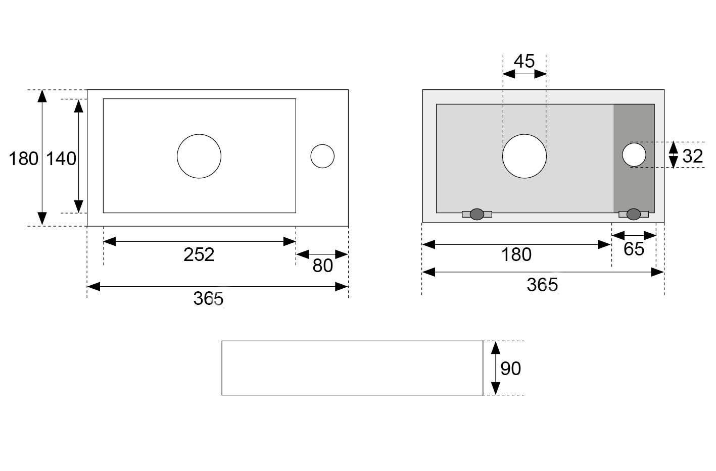 Wiesbaden Rhea mini fontein rechts 36,5 x 18 x 9 cm quartz