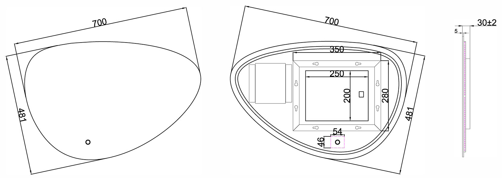 Wiesbaden Uovo spiegel ovaal met LED, dimbaar en spiegelverwarming 70 cm