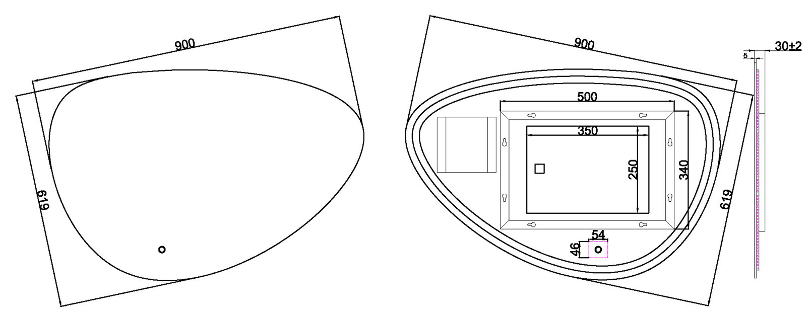 Wiesbaden Uovo Spiegel met verlichting