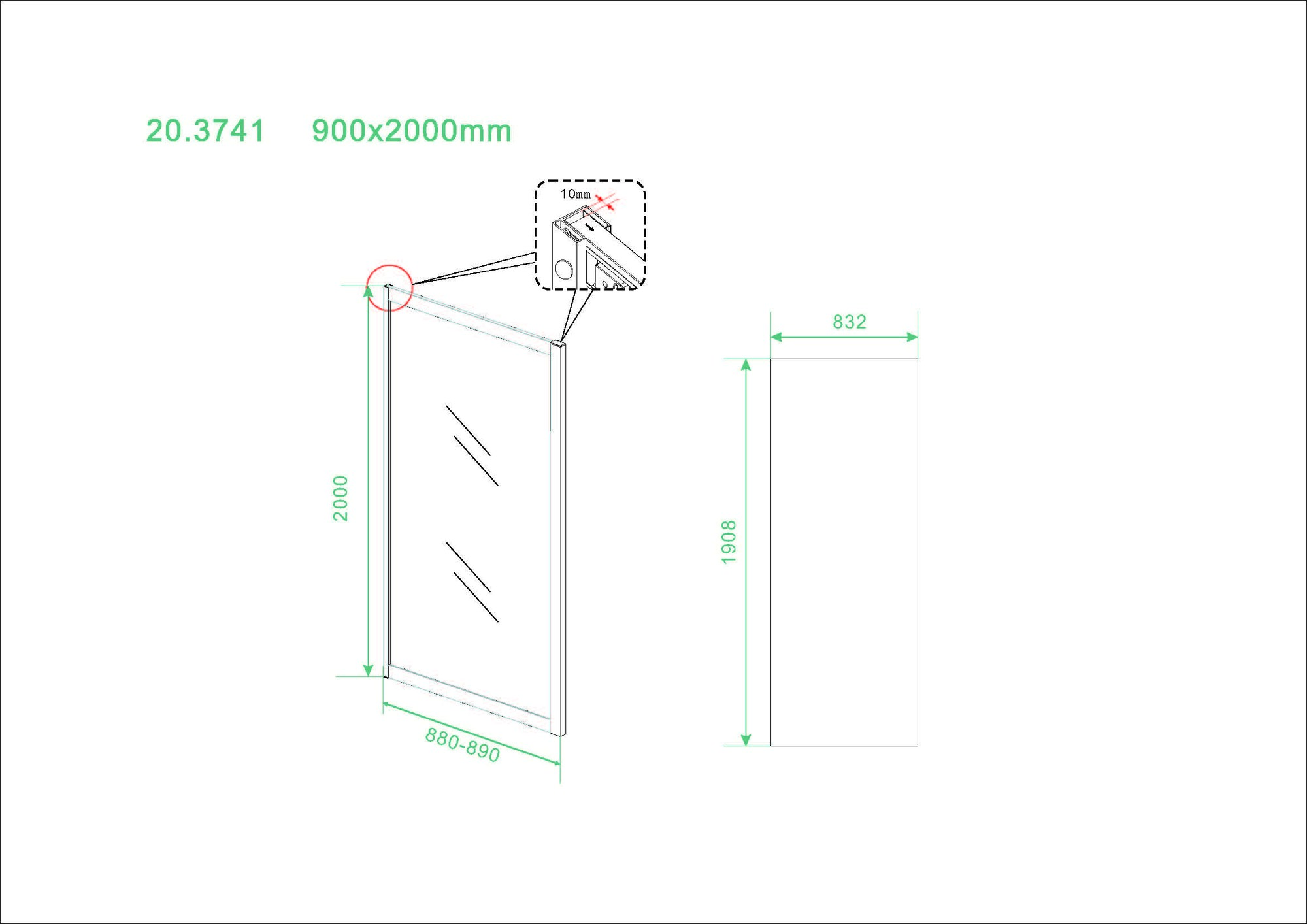 | Dikte glas | 8 mm | |