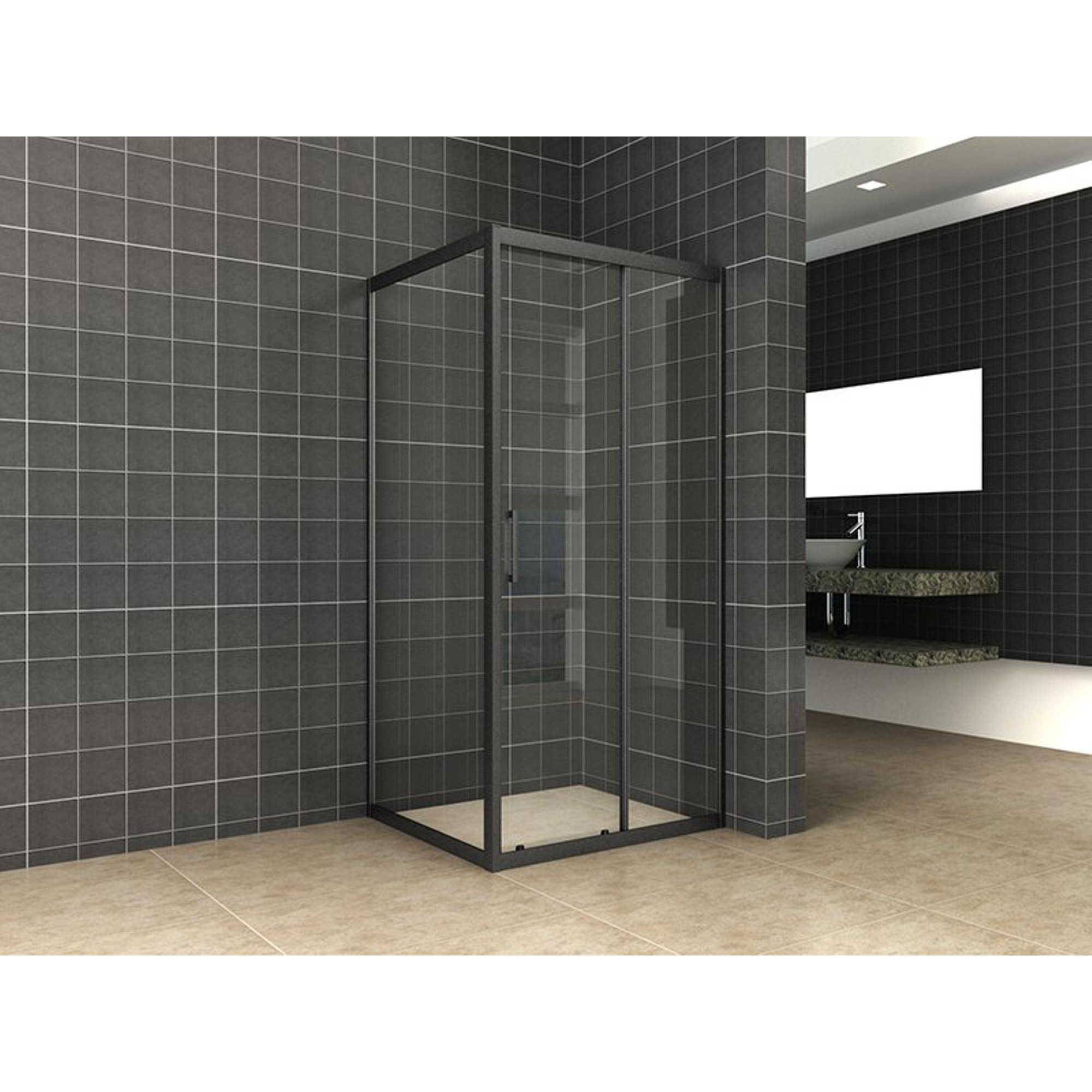 Wiesbaden Skyline zijwand voor nis schuifdeur 900 x 2000 x 8 mm nano helder glas/mat zwart