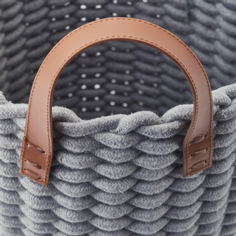 De wasmand RUDON van Aquanova is gemaakt van katoen en polyester. De combinatie van gevlochten materiaal en imitatie lederen handvaten geeft de wasmand een stoere look.