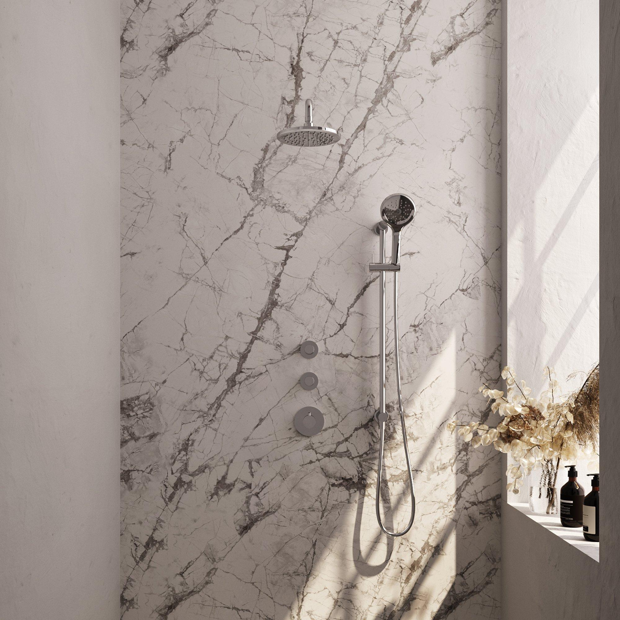 Ervaar ultieme luxe met de Brauer Chrome Edition Regendoucheset. De gladde knoppen en de chroomafwerking geven een gevoel van weelde en comfort. De hoofddouche van 20cm zorgt voor een gelijkmatige waterverdeling en een ontspannende regenbui-ervaring. De inbouwdeel zorgt voor een strakke afwerking in de badkamer, waardoor deze set niet alleen functioneel is maar ook een esthetische toevoeging vormt.