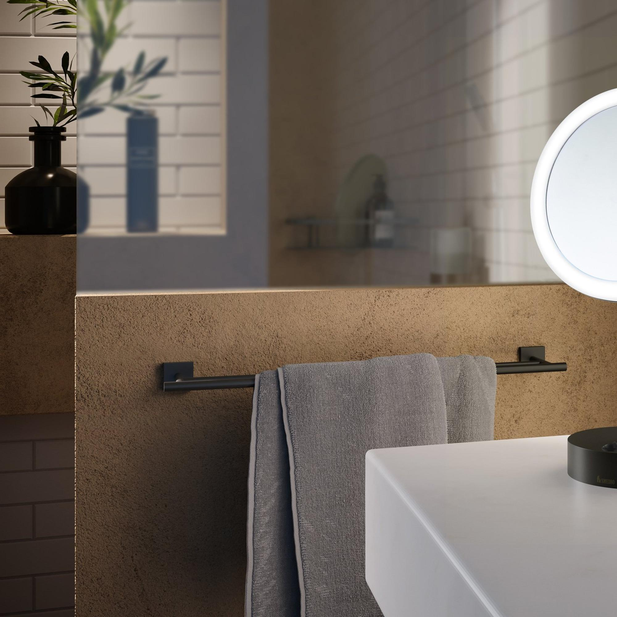 Met zijn matzwarte afwerking straalt de Smedbo House Handdoekhouder een tijdloze elegantie uit. Het diepe zwarte kleurenschema voegt een vleugje luxe toe aan elke badkamer en creëert een verfijnde sfeer. De vormgeving is zorgvuldig ontworpen om zowel praktisch als elegant te zijn, waardoor deze handdoekhouder een essentieel element wordt in je dagelijkse badkamerroutine.