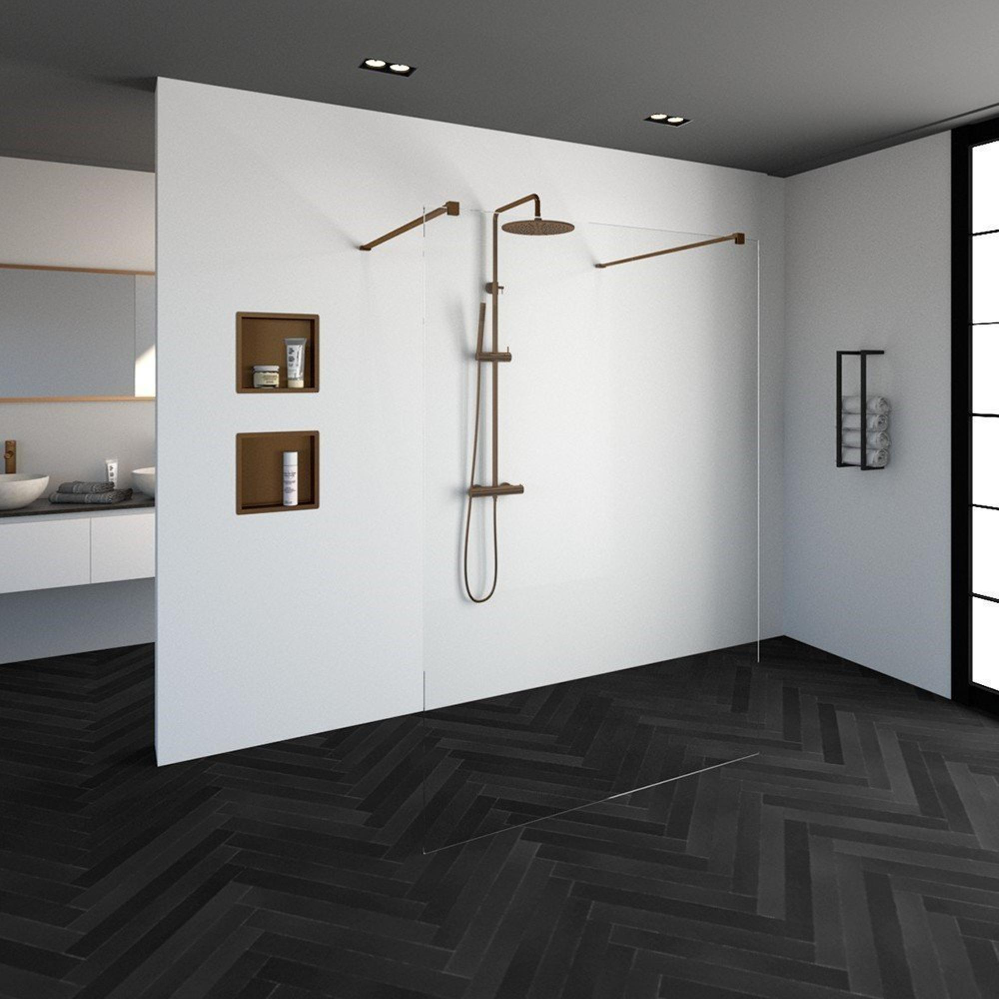 Saniclass Create Inloopdouche - vrijstaand 140x200cm - profielloos - antikalk - 8mm veiligheidsglas - koper