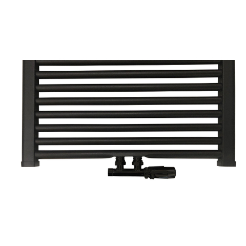 De thermostatische aansluitset kan jouw radiator helemaal afmaken. Het metaal is mat zwart afgewerkt en is bruikbaar voor alle designradiatoren met middenaansluiting. Deze set is perfect te combineren met een radiator in dezelfde kleur, door de verfijnde afwerking met de zwarte kleur.