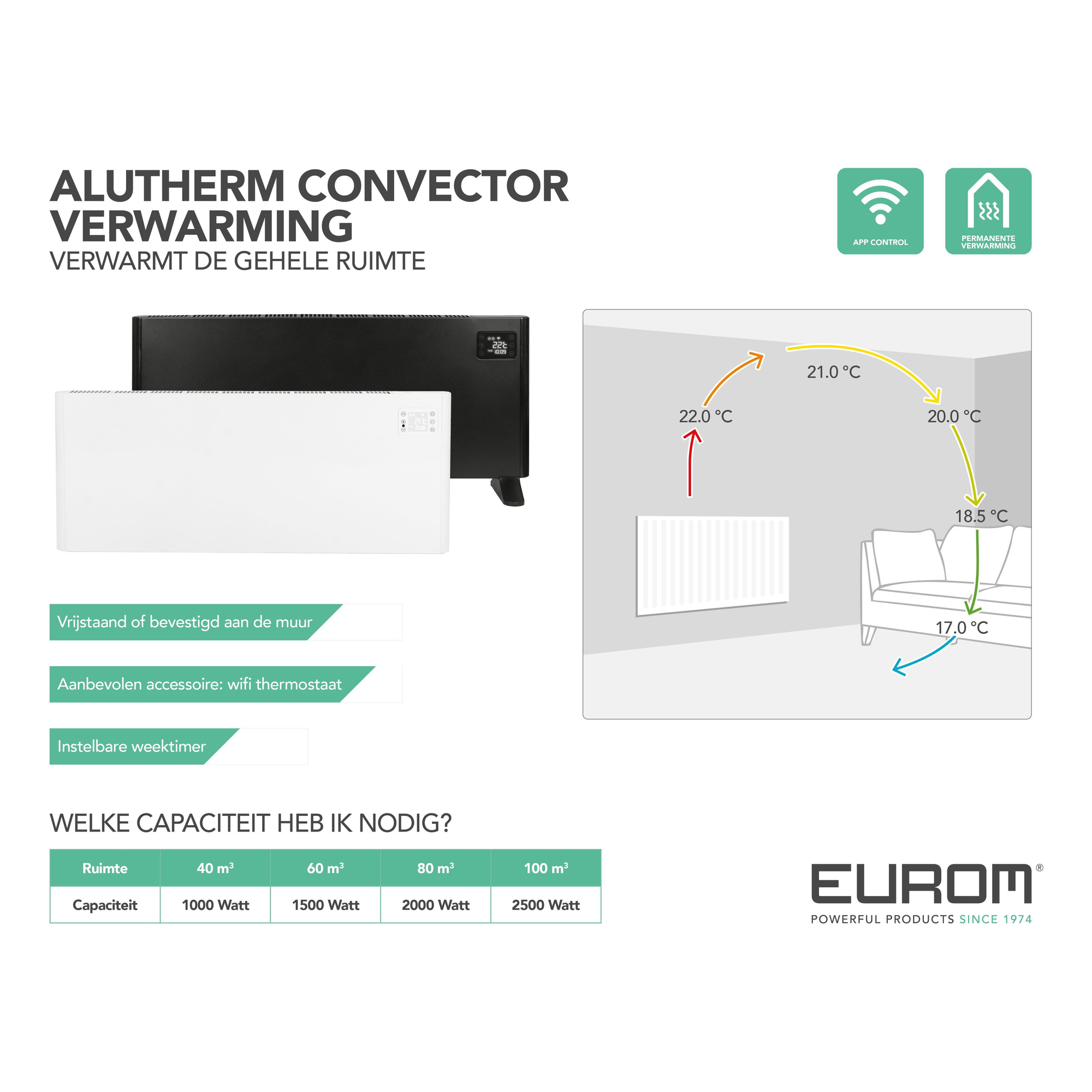 Eurom Alutherm 2500 Wifi Convectorkachel - Hangend/Staand - 2500watt - Wit