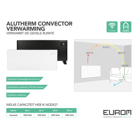 Eurom Alutherm 1000 Wifi Convectorkachel - Hangend/Staand - 1000watt - Wit