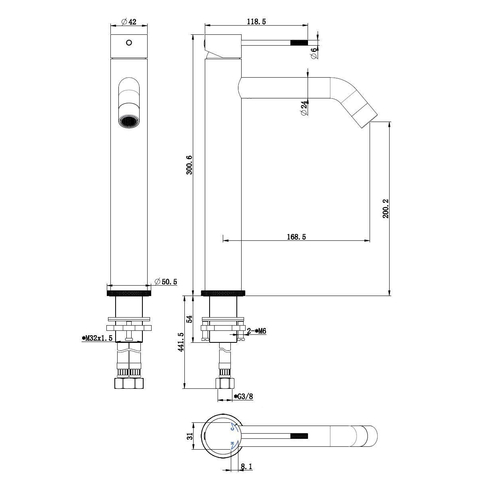 | Hoogte kraan | Hoog |