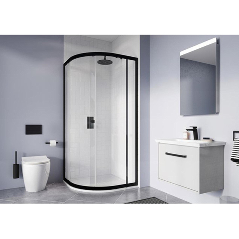 Crosswater Clear 6 kwartronde douchecabine met 1 schuifdeur 80x80x195cm 6mm helder veiligheidsglas mat zwart