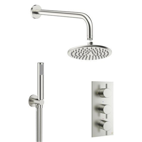 Crosswater MPRO Regendoucheset Inbouw - hoofddouche 20cm - 2 functies - 3 knoppen - wandarm 33cm - staafhanddouche 1 stand - rvs geborsteld