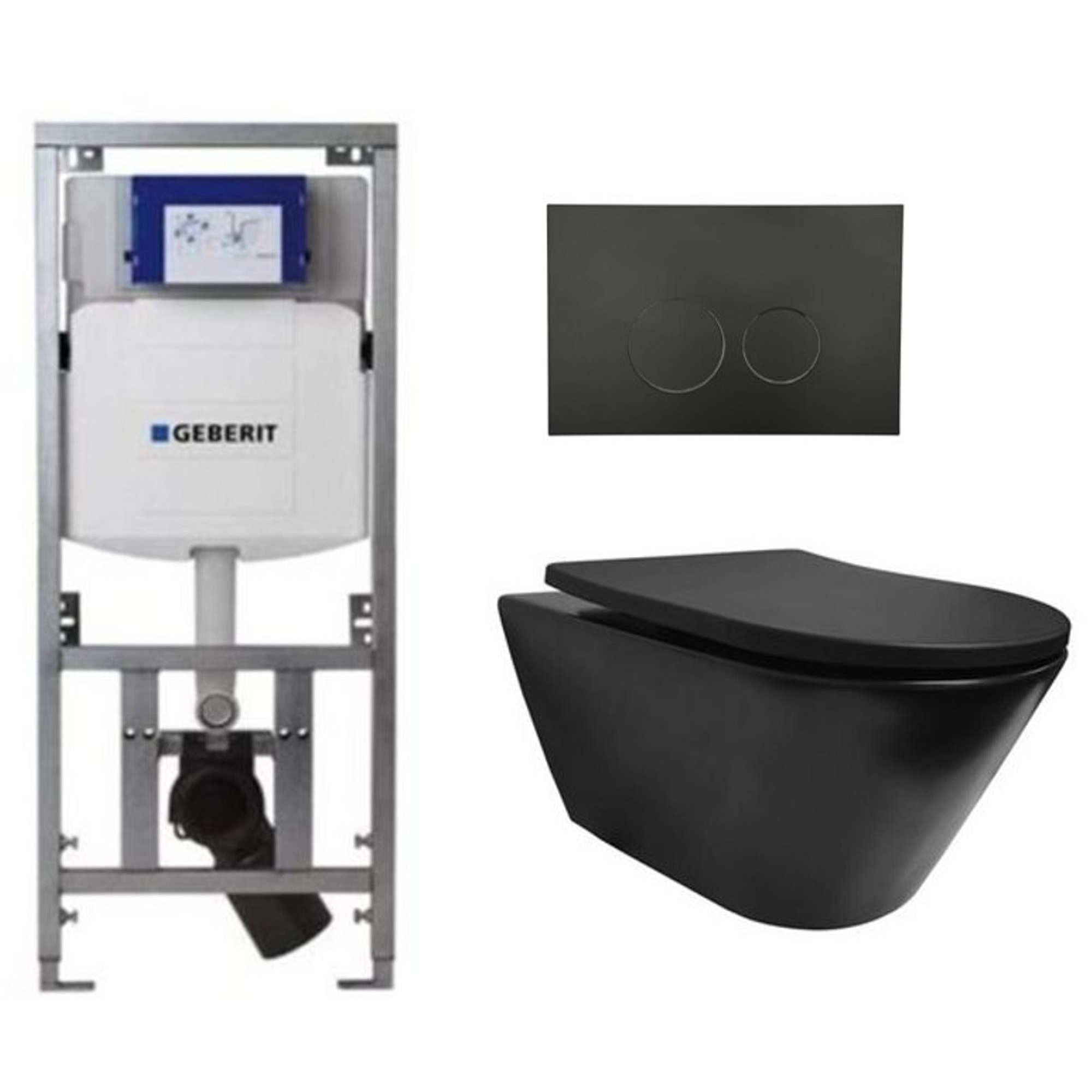 Wiesbaden Stereo toiletset rimless inclusief UP320 toiletreservoir met softclose zitting met bedieningsplaat mat zwart