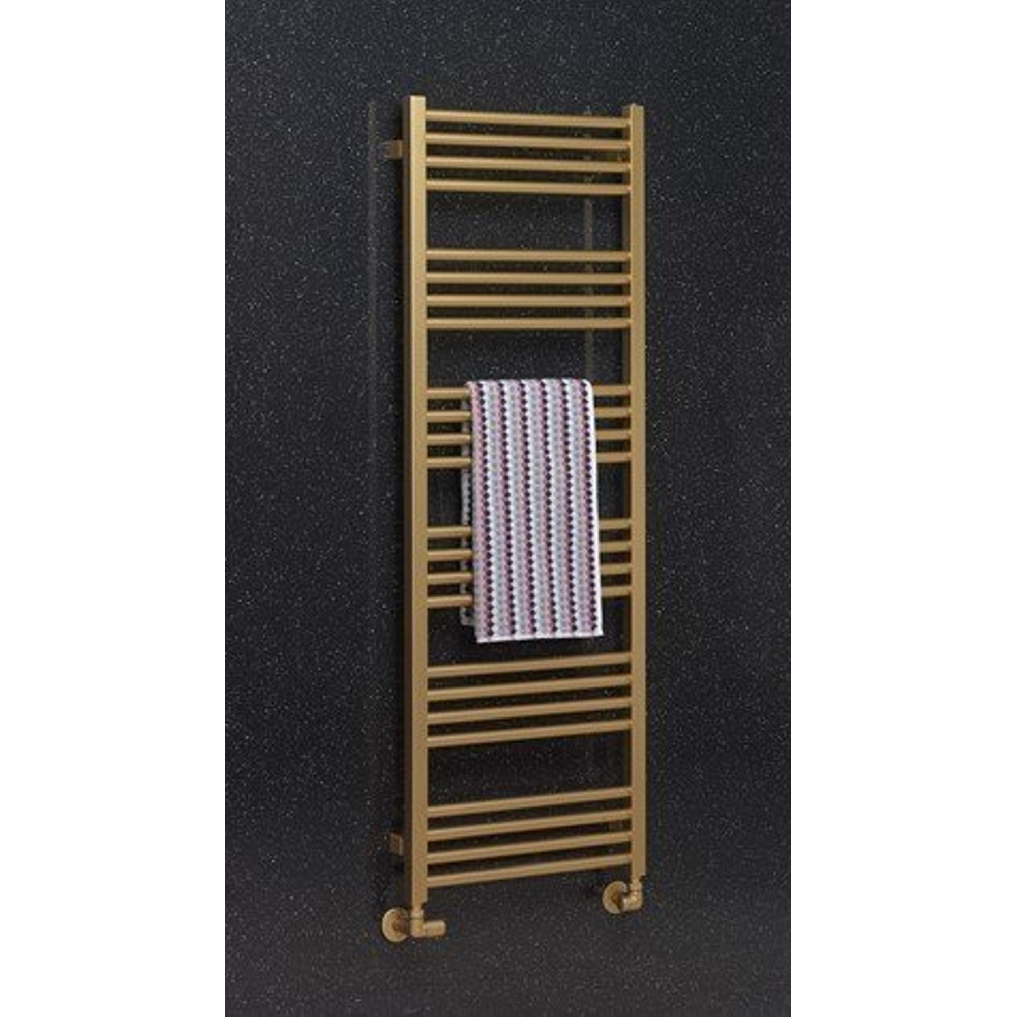 De Crosswater MPRO handdoekradiator - 138x48cm - 568 watt - geborsteld messing (goud) is een prachtig en functioneel toevoeging aan elke badkamer. Met zijn elegante ontwerp en hoogwaardige afwerking, voegt deze handdoekradiator niet alleen warmte toe aan de ruimte, maar ook een vleugje luxe. Het geborsteld messing (gouden) afwerking geeft een tijdloze uitstraling en past perfect bij zowel moderne als klassieke badkamerstijlen. Met zijn afmetingen van 138x48cm en een vermogen van 568 watt, biedt deze radiator voldoende ruimte om handdoeken te verwarmen en te drogen, waardoor je elke dag kunt genieten van warme en comfortabele handdoeken.
