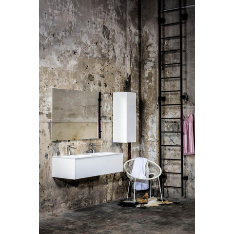 Dit meubel wordt geleverd zonder sifon en heeft ook geen sifonuitsparing. Combineer dan ook uitsluitend met een ondiep sifon, zoals bijvoorbeeld de ruimtebesparende versie van Mondiaz. Deze versie is tevens uitgerust met een passende click waste.