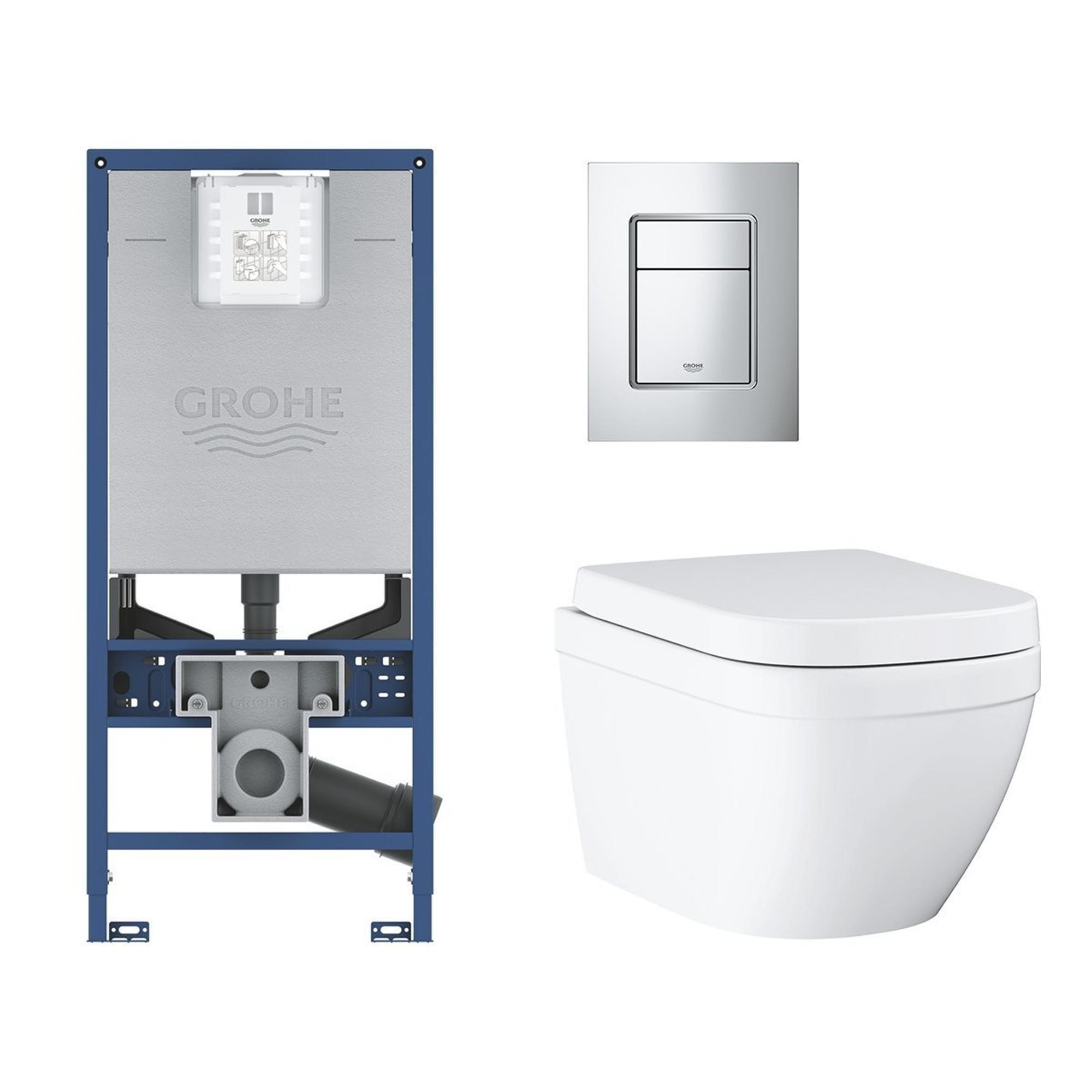 - GROHE Euro wandclosetpack diepspoel spoelrandloos 37.4x54cm met closetzitting softclose en quick release wit