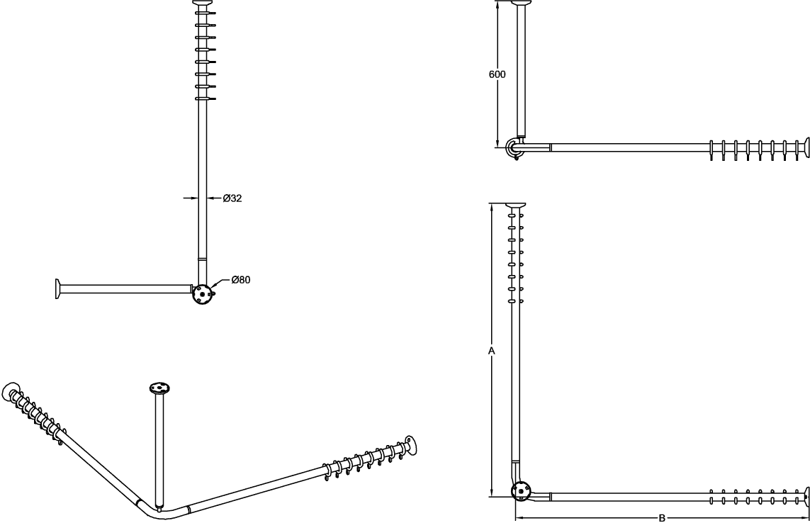 Deze douchestang is ontworpen met veelzijdigheid in gedachten. Met een afmeting van 120x120cm biedt hij voldoende ruimte voor een comfortabele douche-ervaring. De montage in de hoek bespaart ruimte en maakt efficiënt gebruik van de beschikbare badkameroppervlakte. Of je nu een ruime badkamer hebt of een compacte, de Villeroy & Boch Vicare douchestang past perfect en voegt functionaliteit toe aan elke setting.