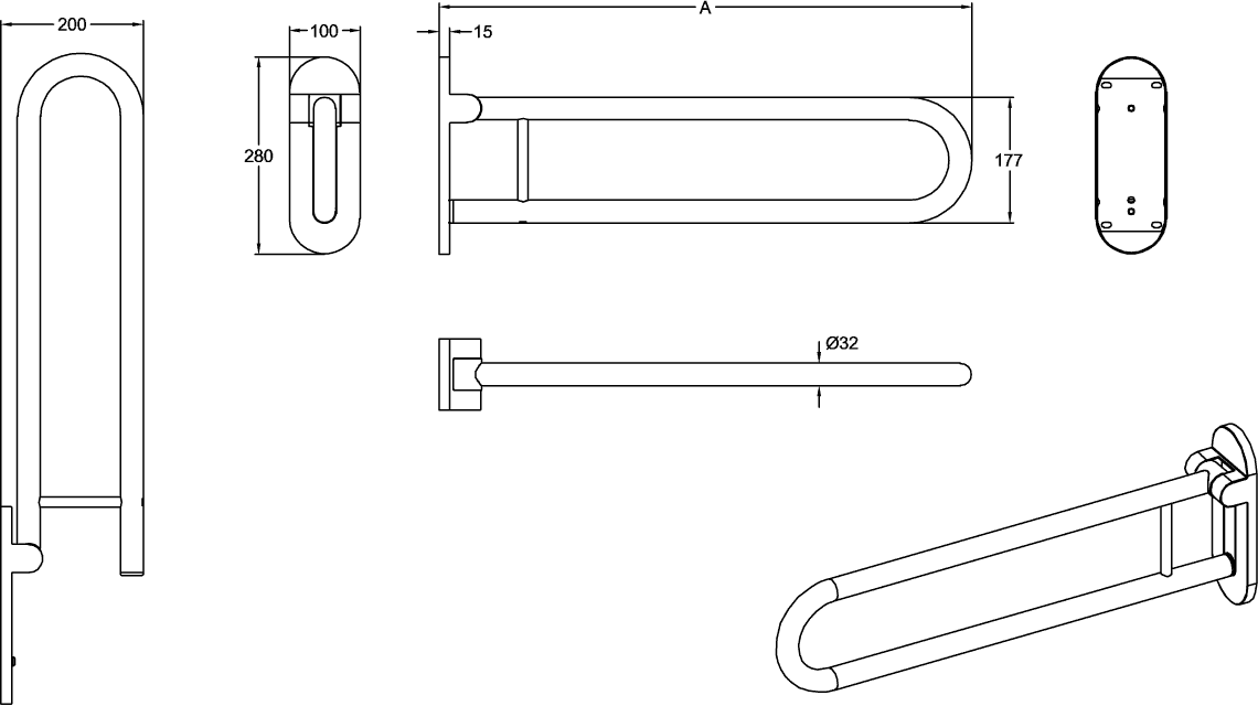 Villeroy & Boch Vicare handgreep 75cm inklapbaar wit