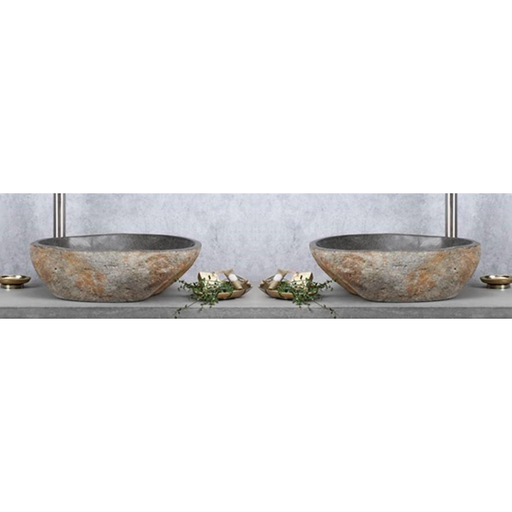 Deze prachtige natuurstenen waskom is een uniek object voor in jouw badkamer. Geen enkele waskom is precies hetzelfde, waardoor niemand anders precies dezelfde kom gaat hebben! Mocht u een brede wastafelkast hebben, is het ook mooi om er twee naast elkaar te zetten. De exacte maat van de waskom is afhankelijk van de steen. De waskom wordt exclusief sifon en click waste geleverd.