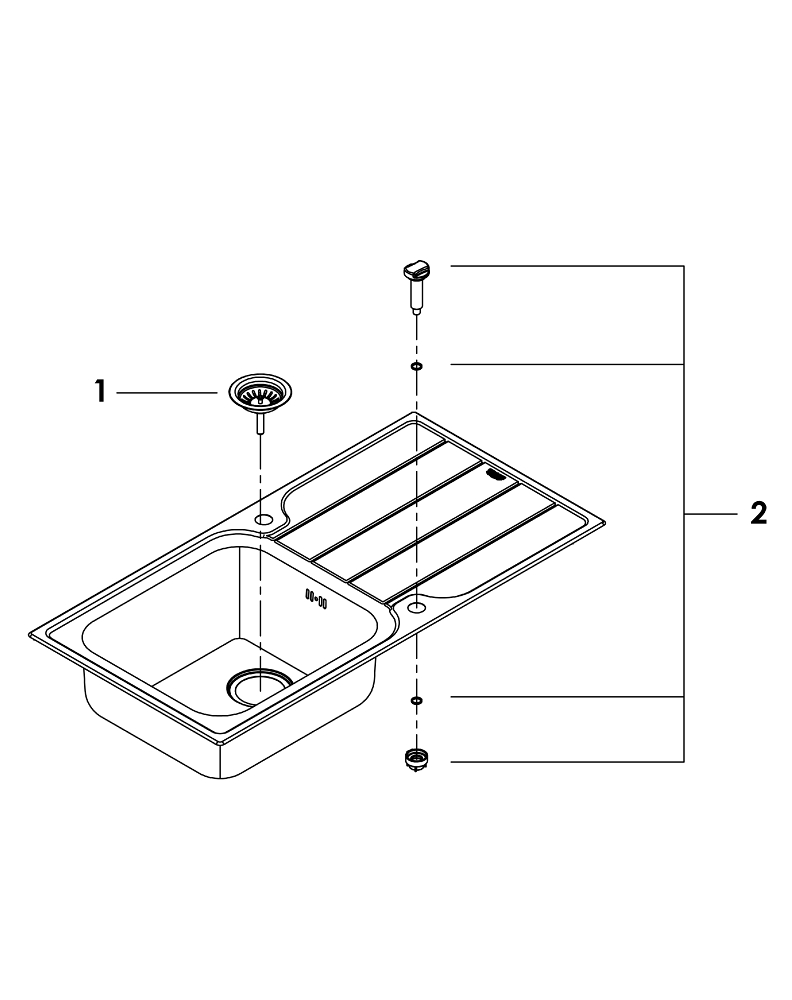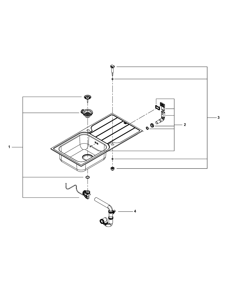 accessoires inbegrepen: automatische afvoergarnituur met draaigreep, afvalset, afvalzeef, montageset