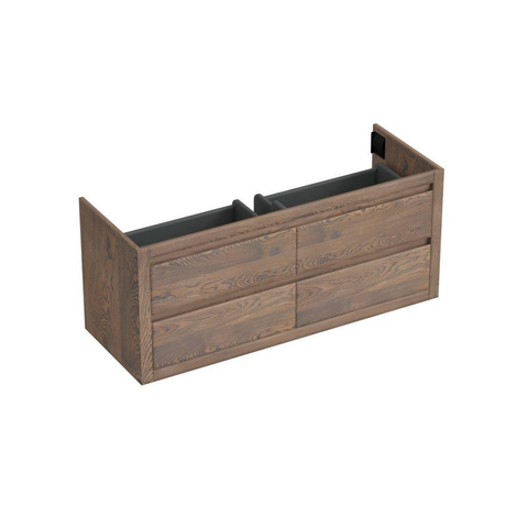 Forzalaqua Gela 2.0 wastafelonderkast 140x51x60cm met 4 softclose greeploze lades Massief Eiken Havanna