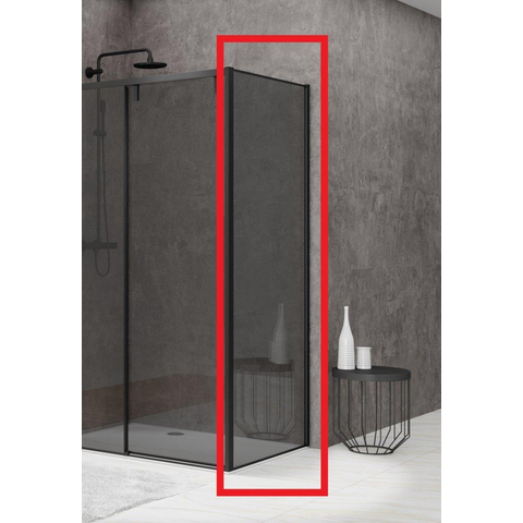 Van Rijn Products ST06 Wand voor hoekcabine 8mm rookglas 88.5x200cm te combineren met schuifdeur zwart