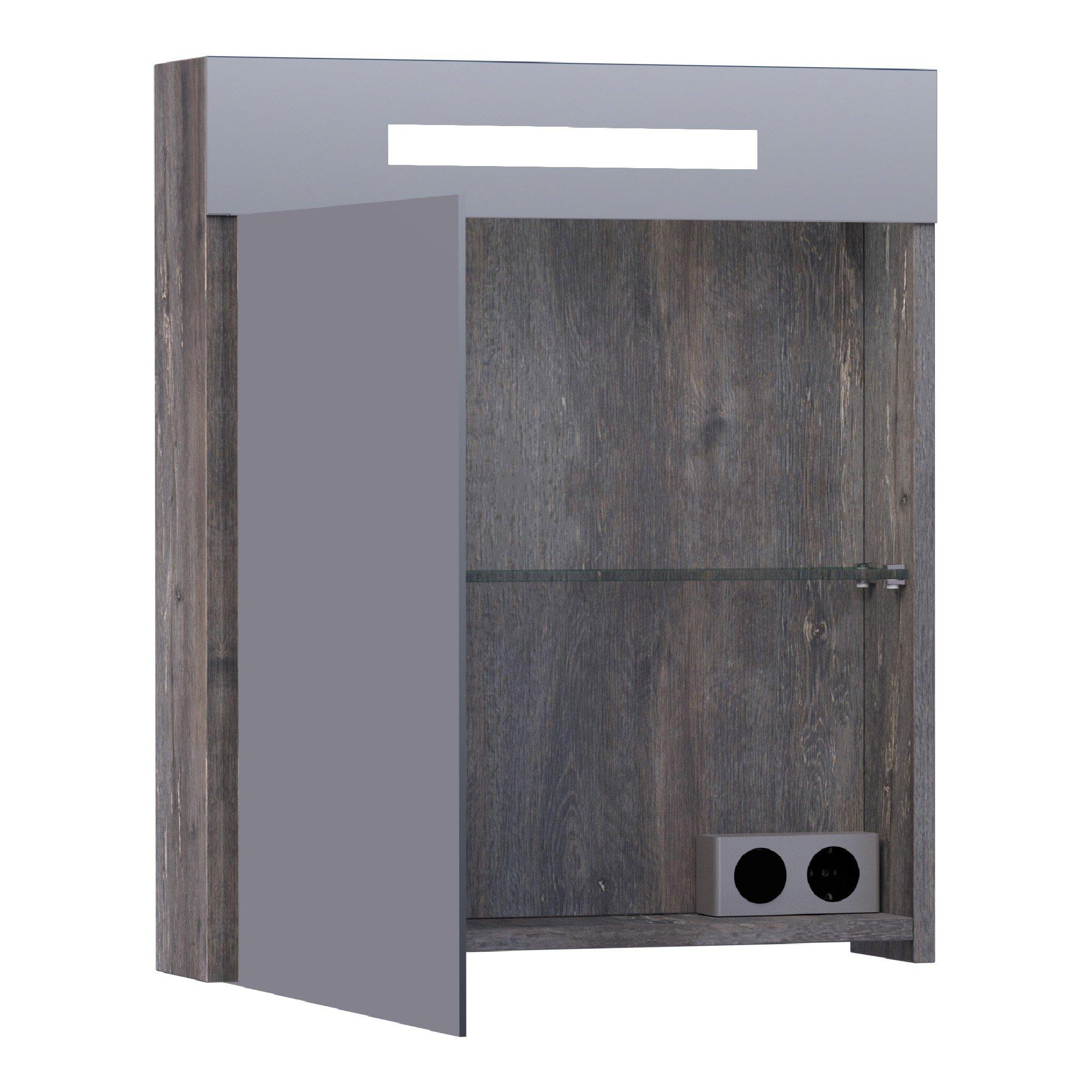 BRAUER Promise Deluxe spiegelkast - 60x70x15cm - met directe verlichting 1 linksdraaiende dubbelzijdige spiegeldeur Driftwood