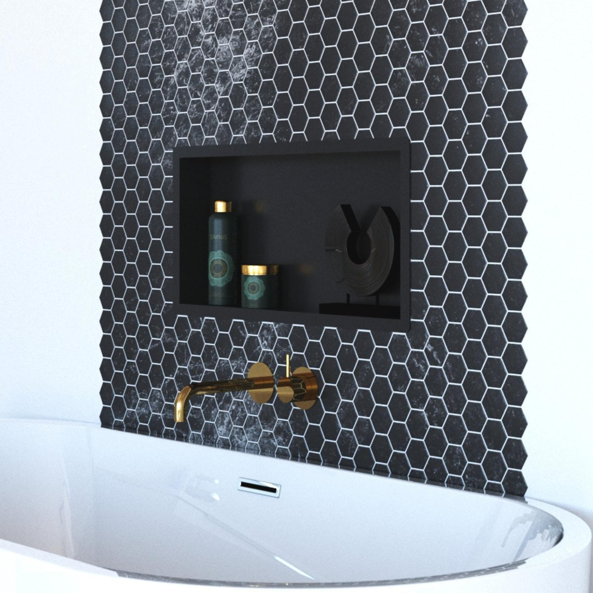 De Saniclass Hide luxe inbouwnis in zwart mat is een prachtige toevoeging aan elke badkamer. Met zijn strakke en moderne design, past deze inbouwnis perfect in elke stijl. De afmetingen van 30x60x10cm bieden voldoende ruimte voor al jouw badkamerbenodigdheden, terwijl de zwarte matte afwerking een vleugje elegantie toevoegt aan de ruimte. Of je nu op zoek bent naar extra opbergruimte of gewoon een stijlvolle touch wilt toevoegen, deze inbouwnis voldoet aan al jouw wensen.