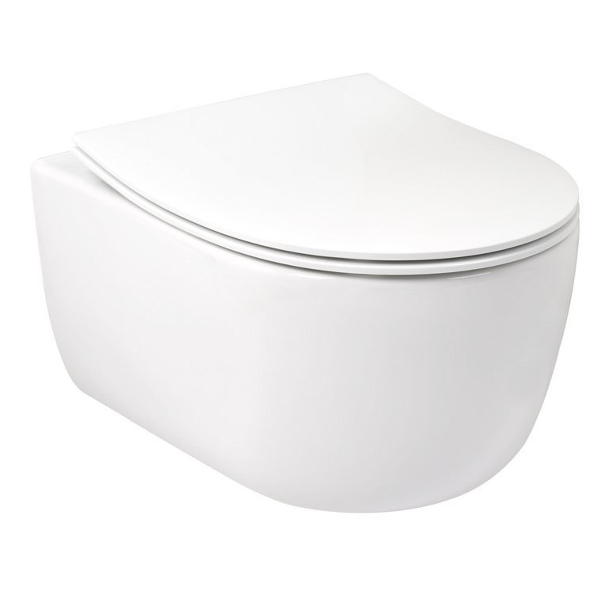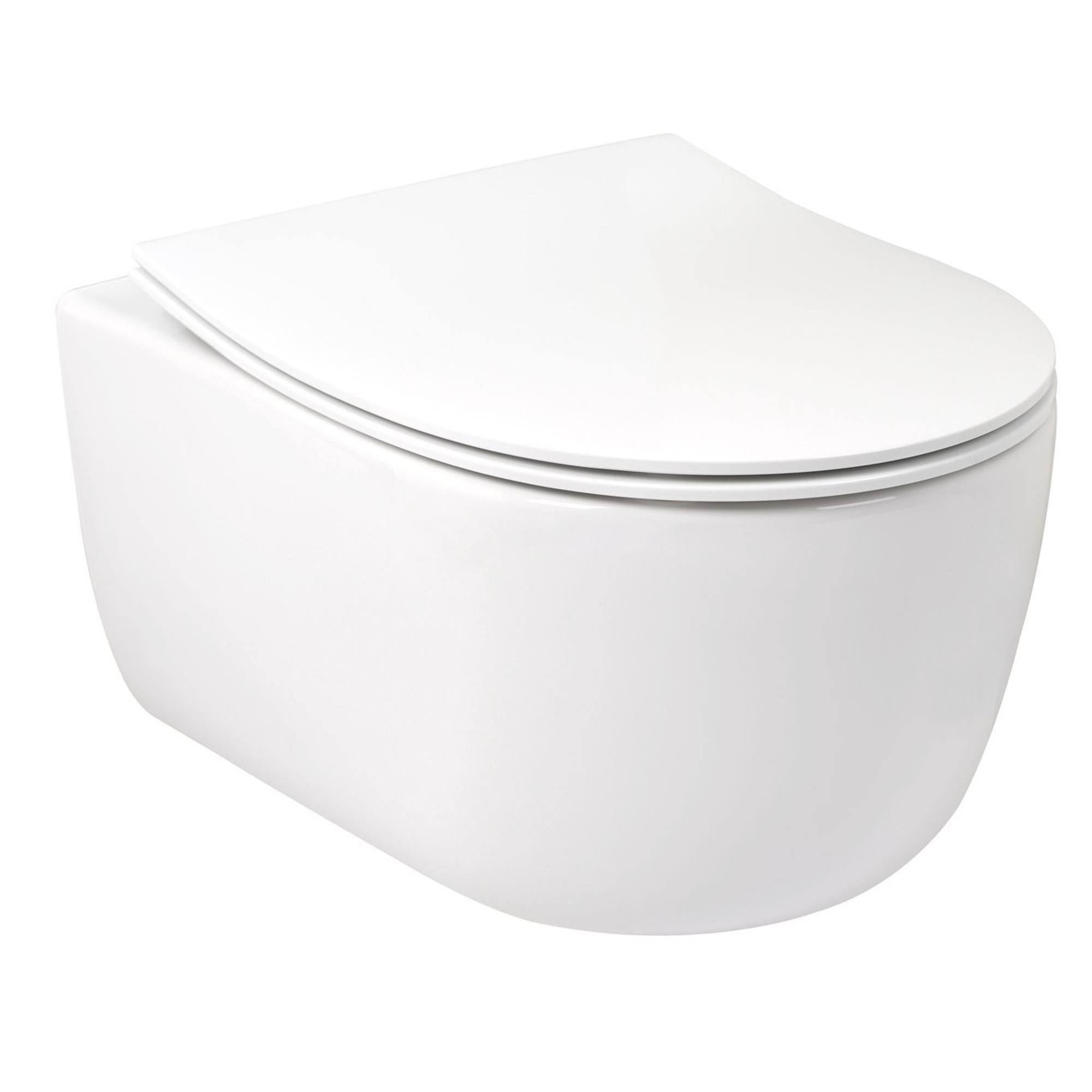 Plieger Kansas wandclosetpack met compact wandcloset diepspoel spoelrandloos 36x49cm inclusief softclose slim closetzitting en lift-off glans wit