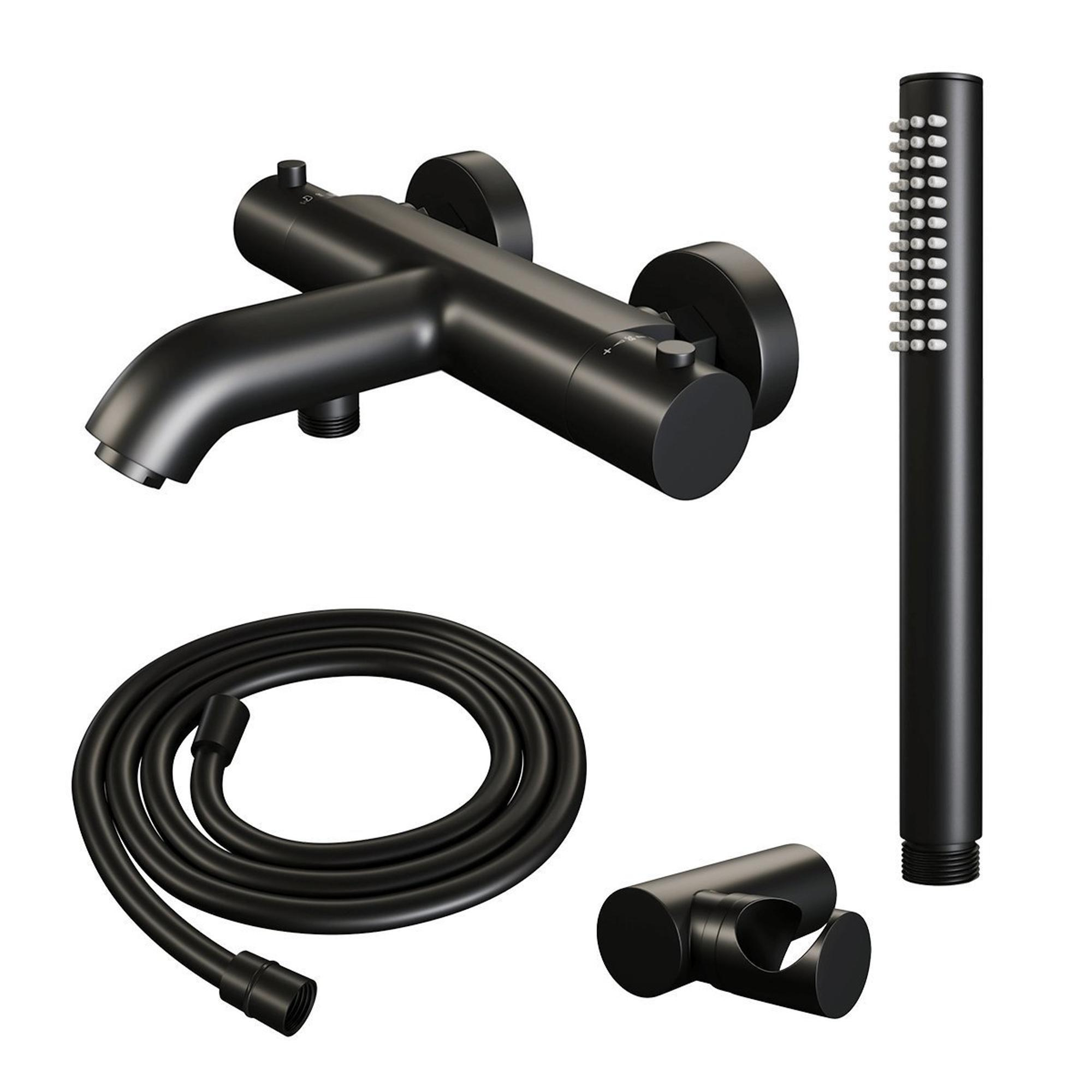 Brauer Black Edition Badthermostaatkraan opbouw met handdoucheset mat zwart