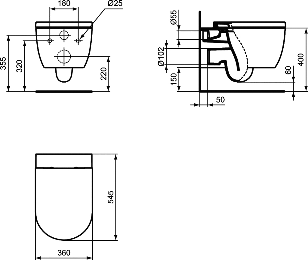 Ideal standard Blend wandcloset 54cm m/spoelrand dpsp wit