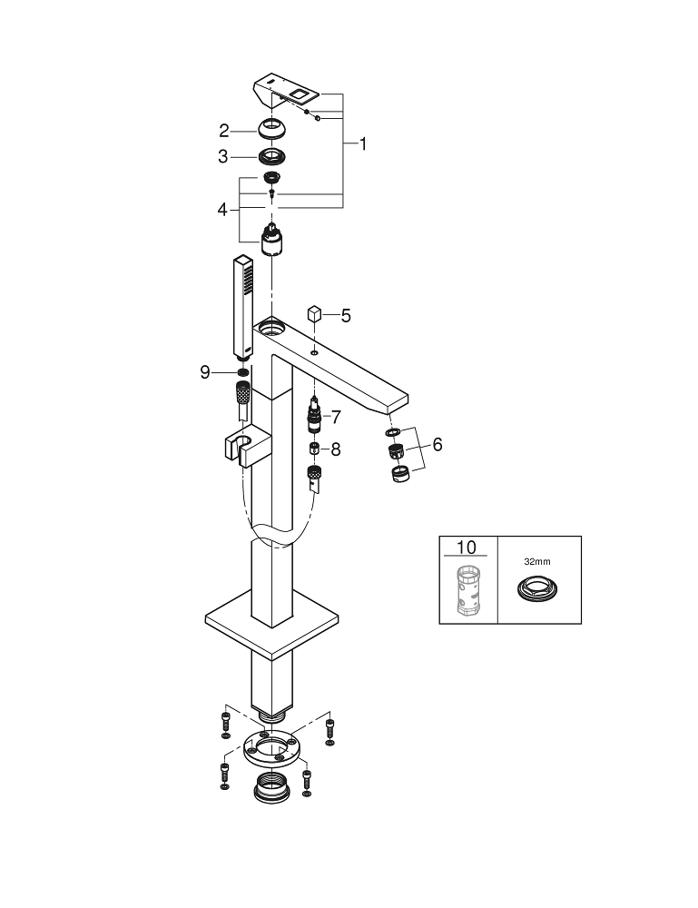 GROHE Eurocube Freestander badkraan m. omstel m. douchehouder m. handdouche en doucheslang 125cm brushed hard graphite