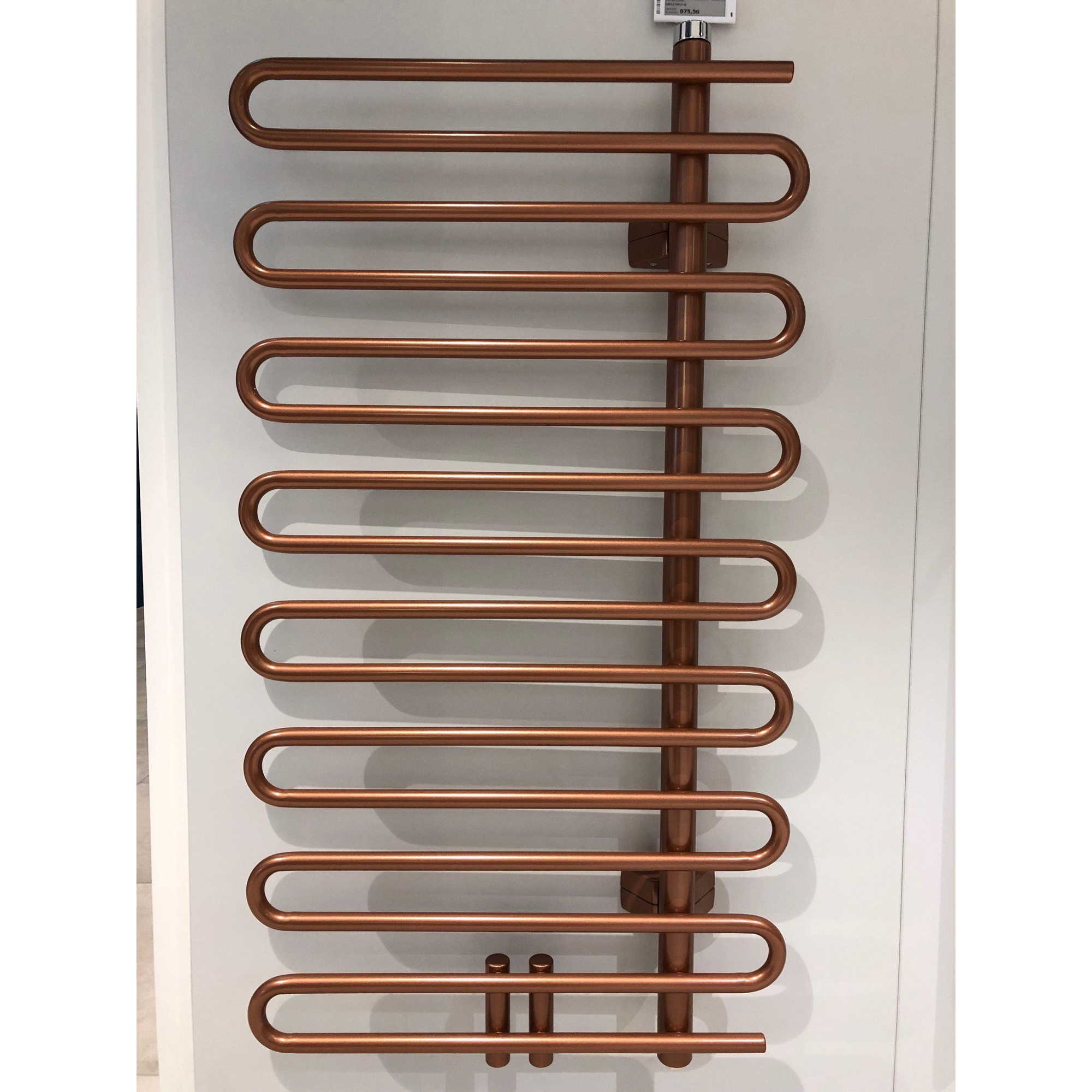 De Instamat Cobra Designradiator 114x60cm met collectorbuis rechts en een vermogen van 517 watt in de prachtige Metallic Koper kleur is een ware eyecatcher voor elke badkamer. Met zijn elegante ontwerp en hoogwaardige afwerking voegt deze designradiator niet alleen warmte toe aan de ruimte, maar ook stijl en luxe. Of je nu een moderne of klassieke badkamer hebt, deze radiator past perfect bij elke interieurstijl.