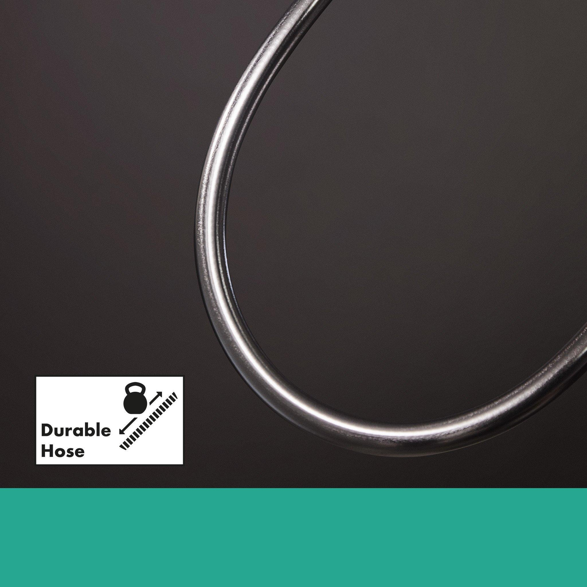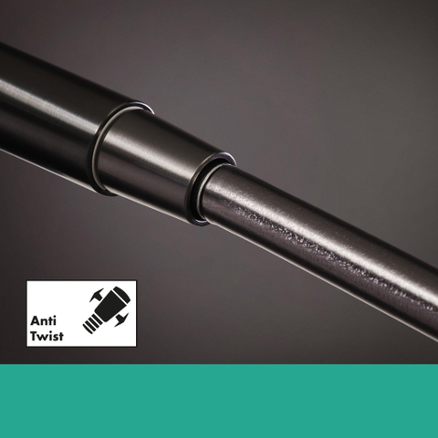 De hansgrohe Isiflex doucheslang 160 cm in Brushed Black Chrome is een geslaagde combinatie van kwaliteit, bedieningsgemak en uitstraling. De flexibele kunststof slang geeft met zijn lengte van 1,60 veel bewegingsvrijheid en zorgt voor comfortabel doucheplezier. Robuust is ook zijn gladde buitenzijde, die met zijn Brushed Black Chrome zorgt voor een optisch highlight in de badkamer. In combinatie met een douchekop met dezelfde finish - Brushed Black Chrome - wordt de doucheslang een harmonisch geheel, dat een aantrekkelijk contrast geeft en zeer goed in een moderne badkamer past. Nog een pluspunt: Een speciale bevestiging voorkomt dat de doucheslang in de knoop raakt. Zo blijft de matchende slang altijd goed in vorm.