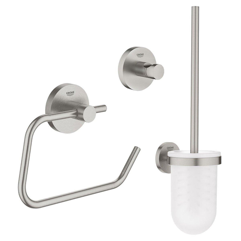 GROHE Essentials Toilet accessoireset 3-delig met toiletborstelhouder, handdoekhaak en toiletrolhouder zonder klep super steel