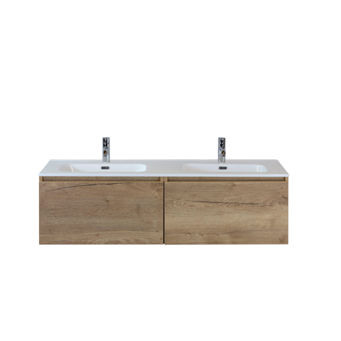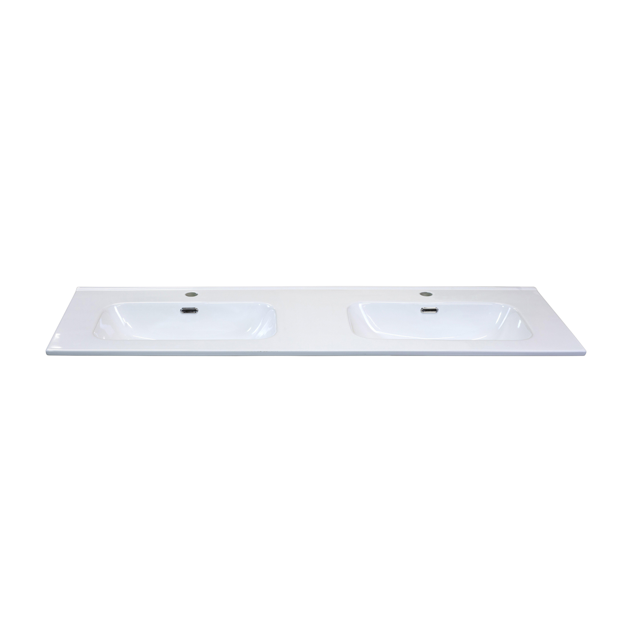 HR badmeubelen Cover Wastafel - 141x46.5x1.8cm - 2 kraangaten - 2 wasbakken - keramiek wit