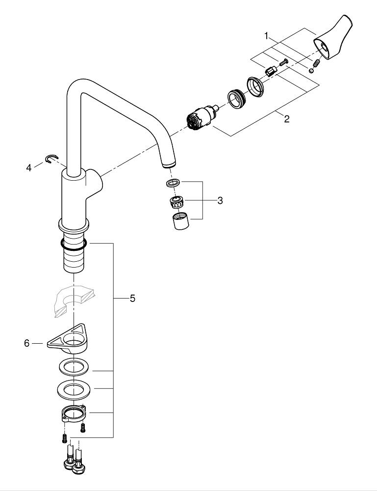 GROHE Zero interne kanalen, waardoor het water niet met de legering in contact komt