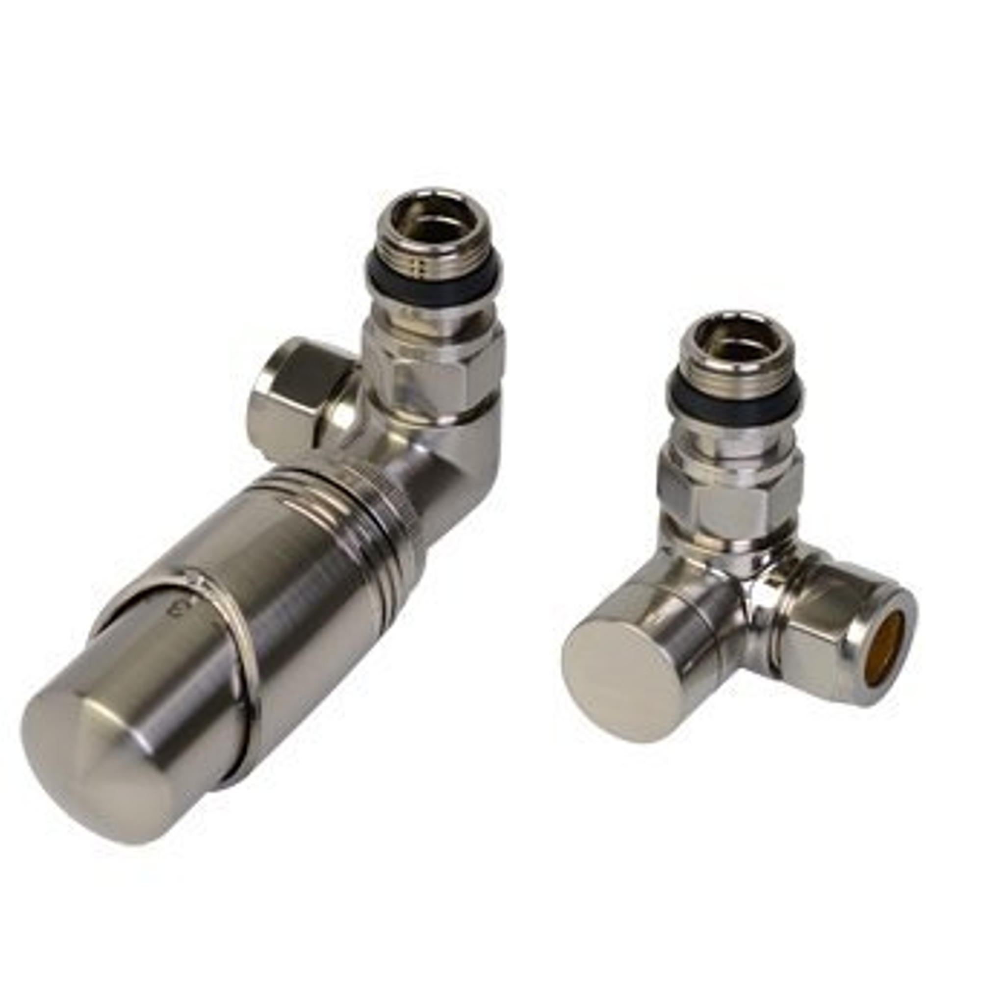Comodesign radiator aansluitset universeel dubbel haaksincl. koppeling 15 en 16mmmet thermostaatknopRVS-look