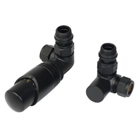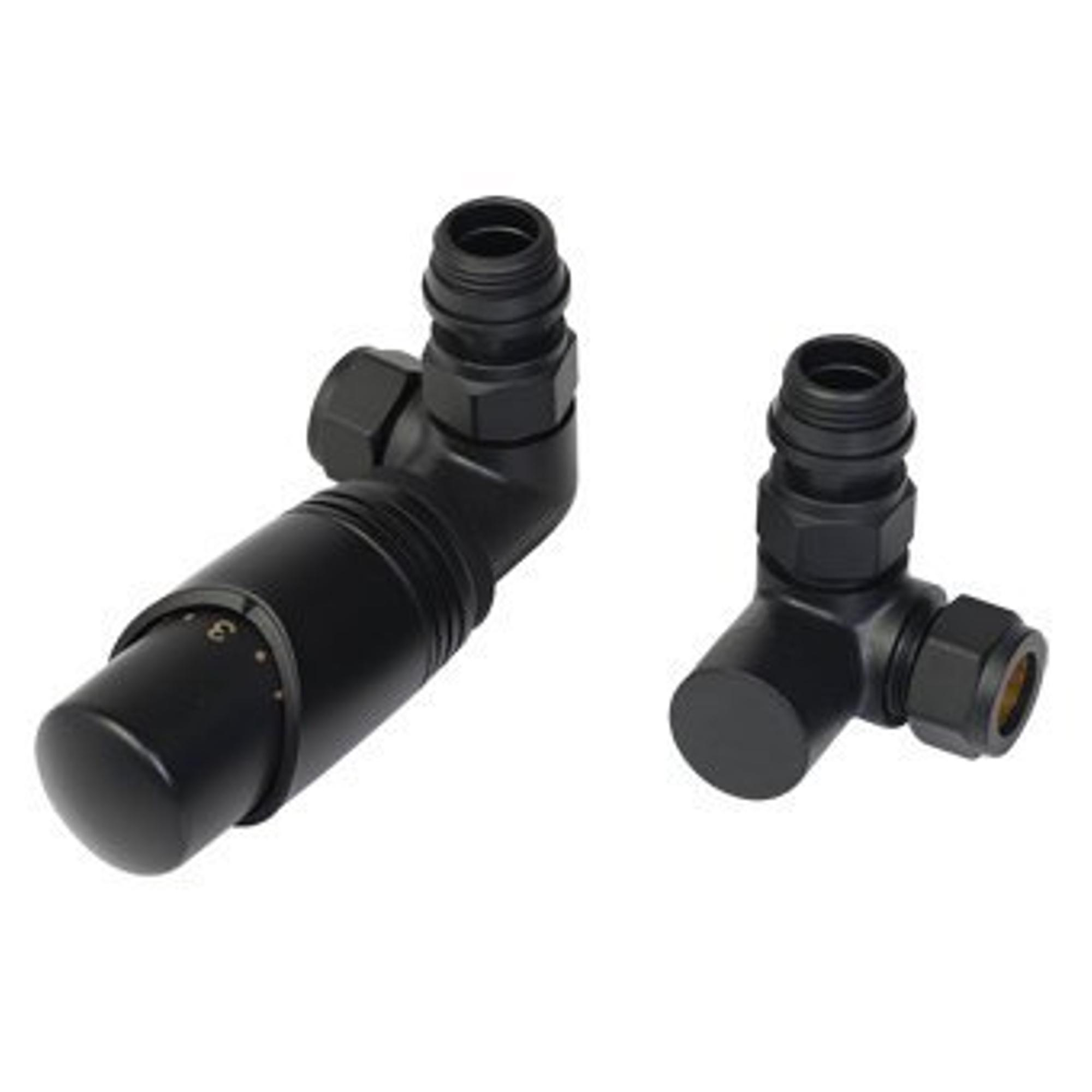 Comodesign radiator aansluitset universeel dubbel haaksincl. koppeling 15 en 16mmmet thermostaatknopmat zwart