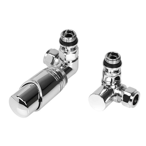 Comodesign radiator aansluitset universeel dubbel haaksincl. koppeling 15 en 16mmmet thermostaatknopchroom
