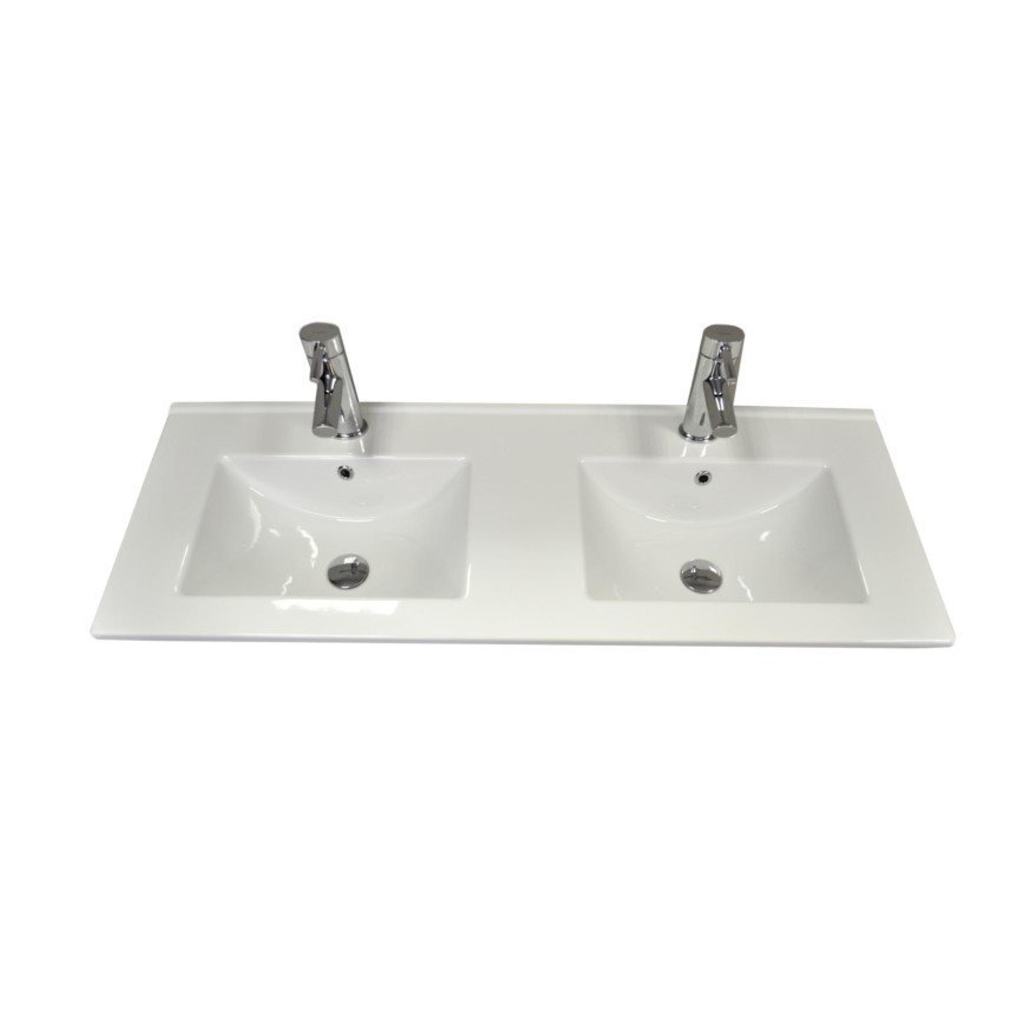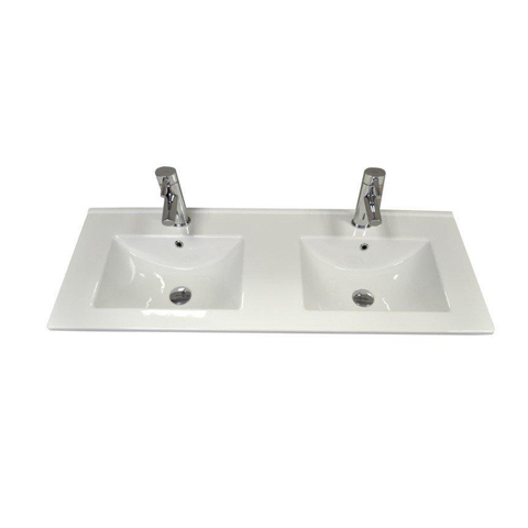 Sanicare Q1 wastafel 121x46cm 2 kraangaten met overloop rechthoek keramiek wit SW536862