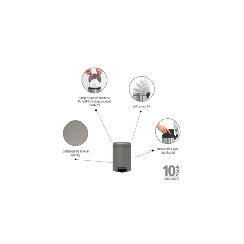 Brabantia NewIcon Pedaalemmer - 3 liter - kunststof binnenemmer - mineral concrete grey