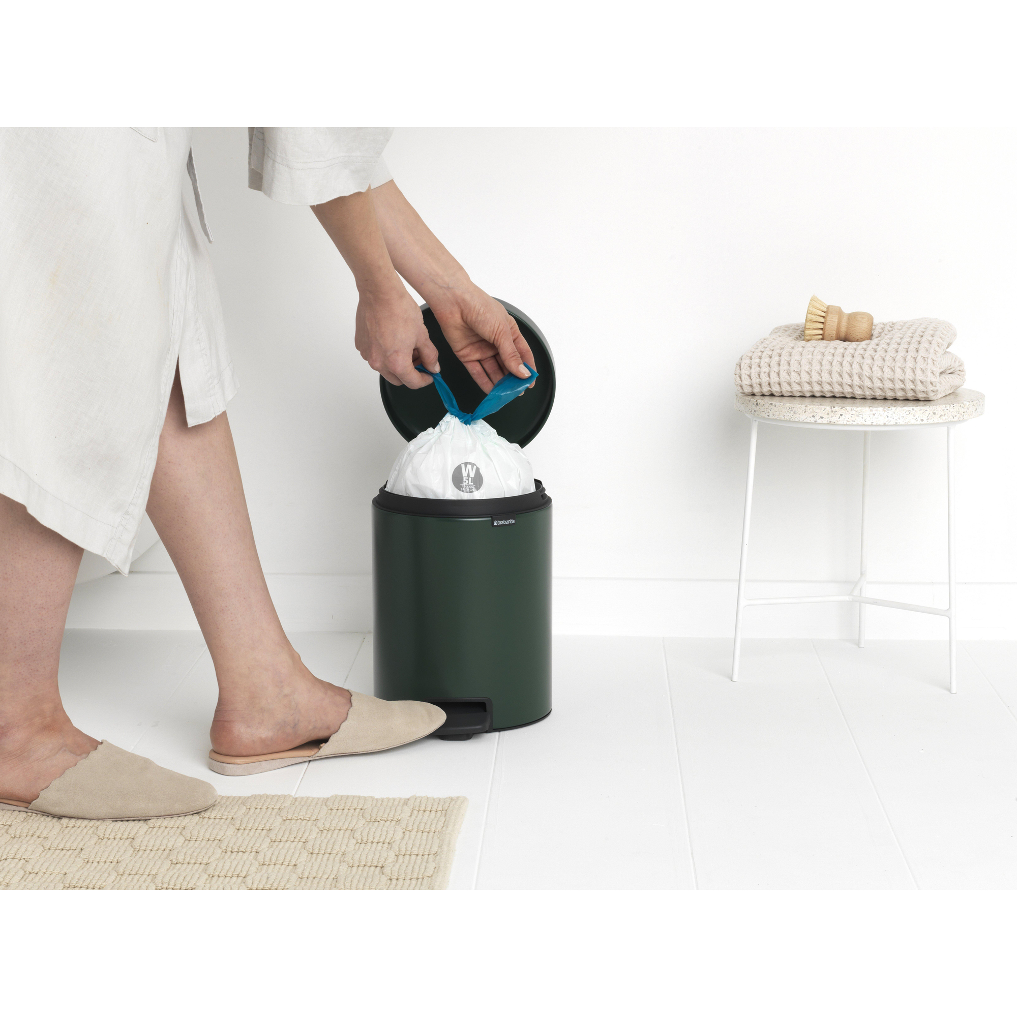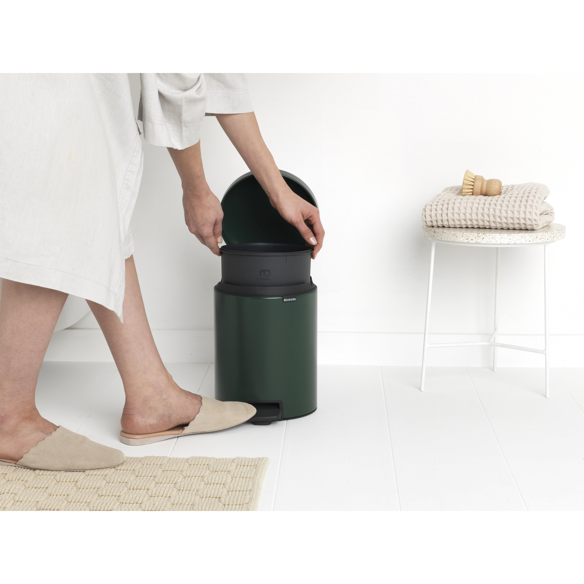 De Brabantia NewIcon Pedaalemmer is ontworpen met oog voor detail en stijl. Het strakke ontwerp en de mooie pine green kleur maken deze pedaalemmer een esthetische toevoeging aan elke ruimte. Of het nu in de badkamer, keuken of slaapkamer is, deze pedaalemmer voegt een vleugje elegantie toe aan je interieur.