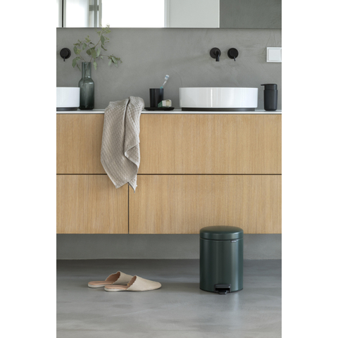 De Brabantia NewIcon Pedaalemmer in pine green is de perfecte combinatie van stijl en functionaliteit voor jouw badkamer of keuken. Met zijn compacte formaat van 5 liter past deze pedaalemmer gemakkelijk in elke ruimte. De kunststof binnenemmer zorgt voor hygiënisch gebruik en het pedaalmechanisme maakt het openen en sluiten van de emmer moeiteloos. De pine green kleur voegt een vleugje frisheid en natuurlijke uitstraling toe aan je interieur.