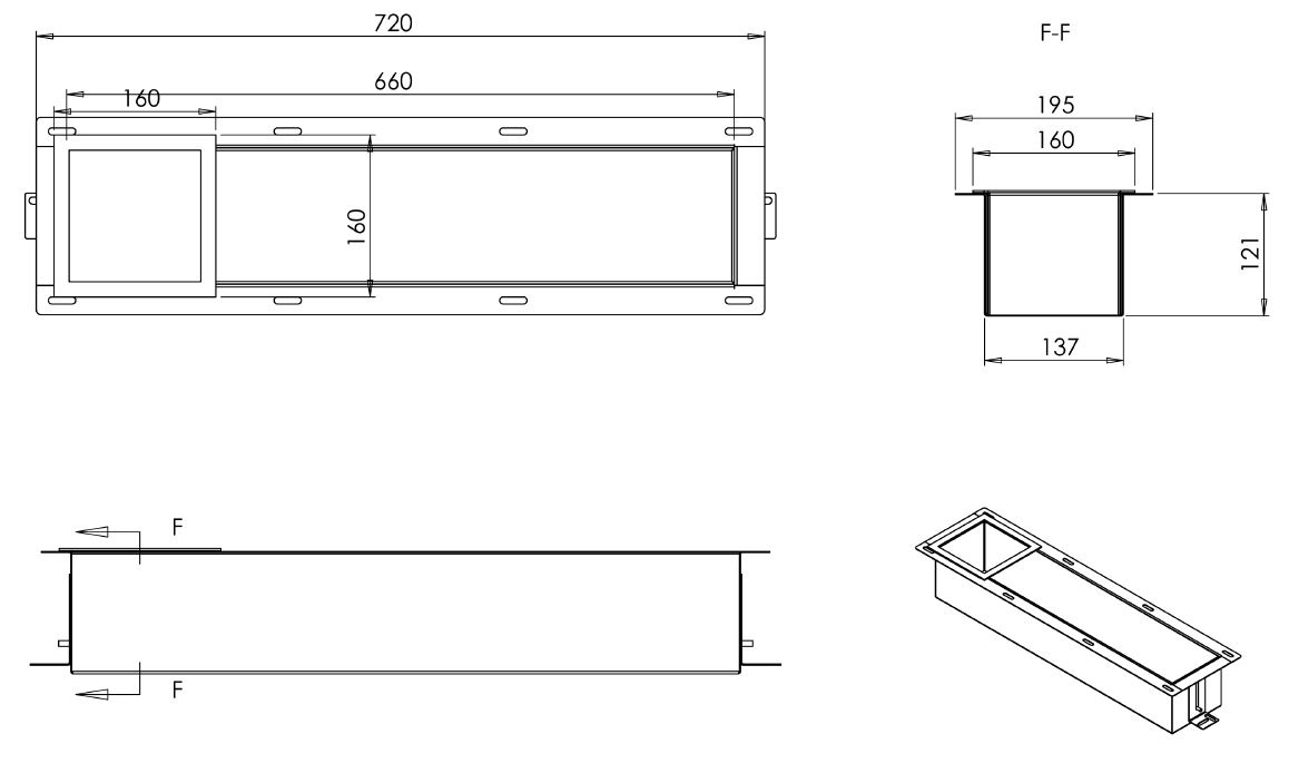 De houder is van RVS gemaakt en heeft de afmetingen van 14x66x12 cm.
