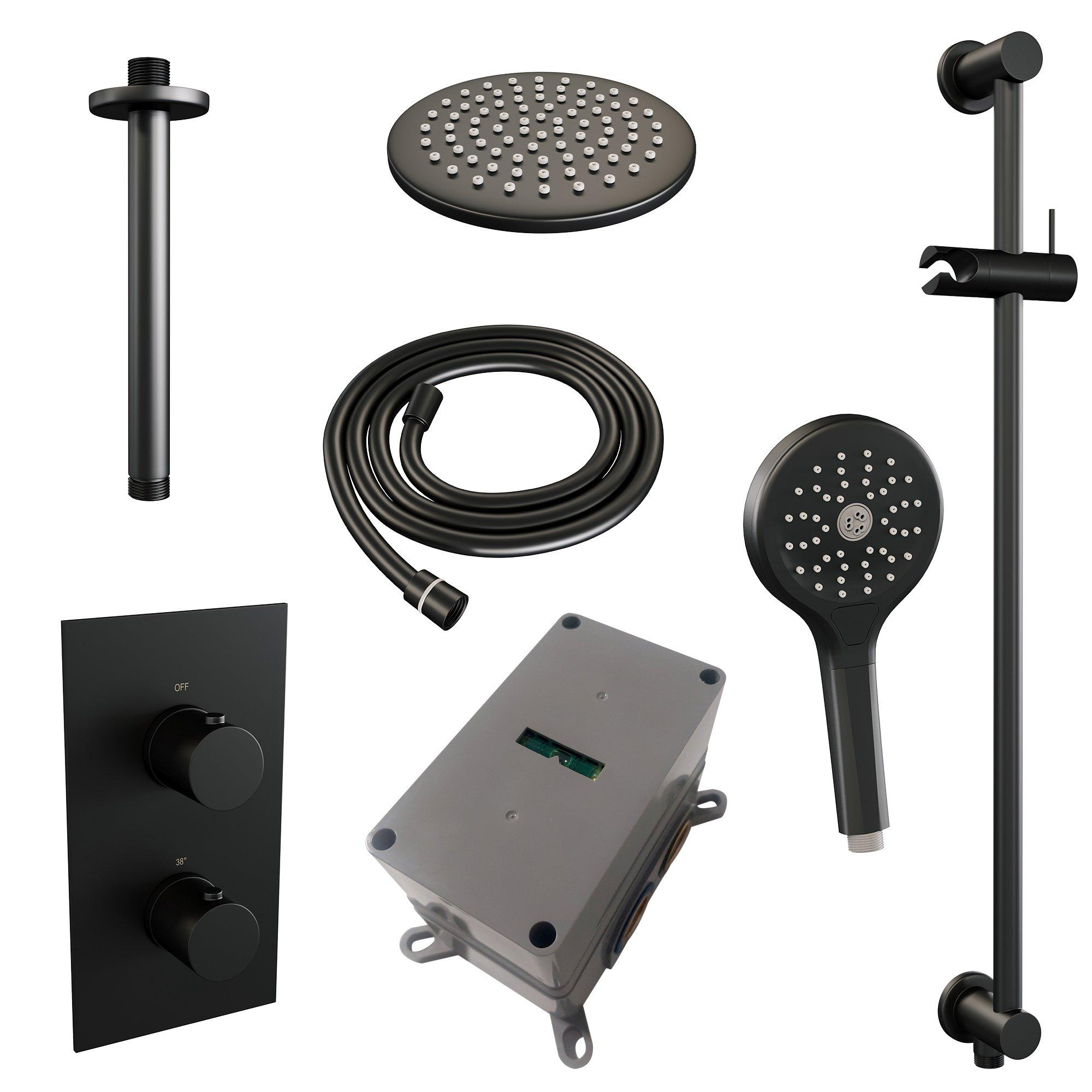Brauer Black Edition Regendoucheset inbouw - hoofddouche 20cm - plafondarm 20cm - 2 functies - glijstang - inclusief inbouwdeel - handdouche Rond 3 standen - mat zwart