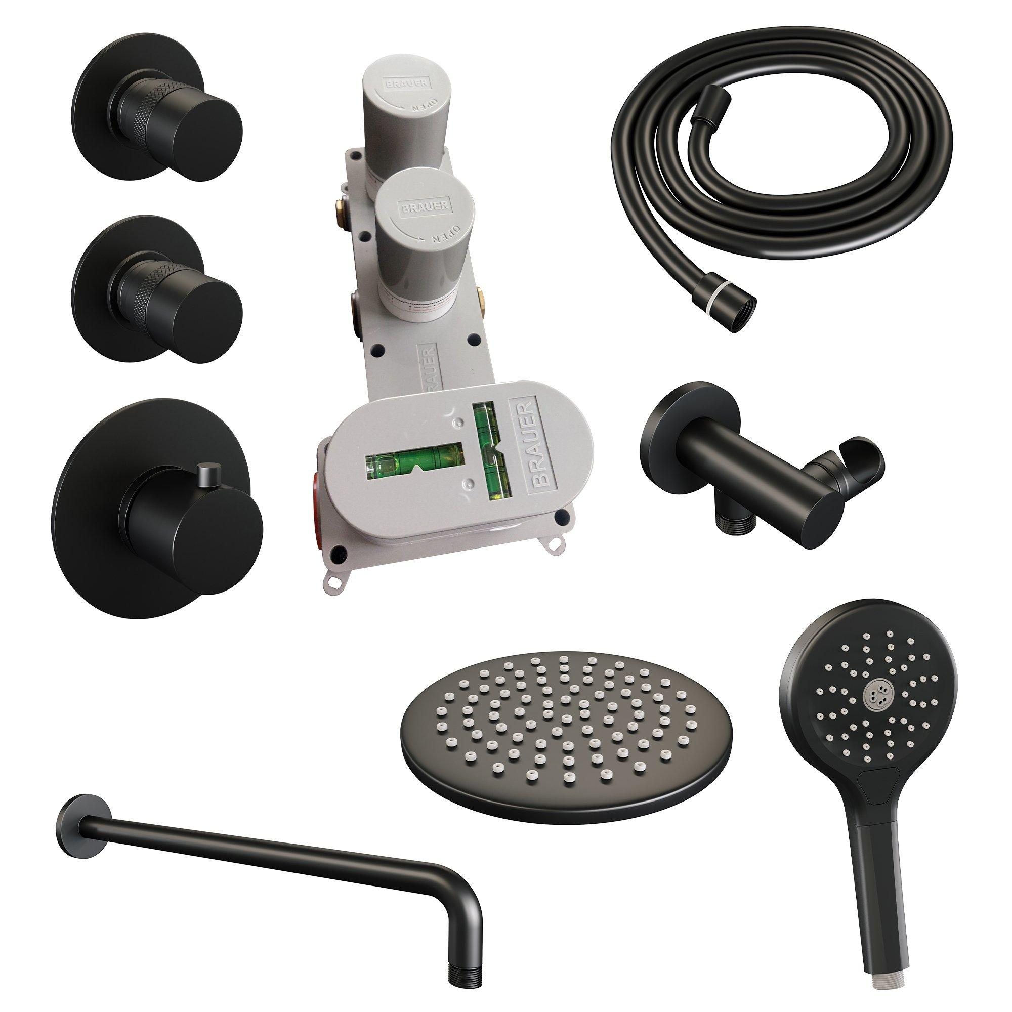 Brauer Black Edition Regendoucheset inbouw - hoofddouche 20cm - Wandarm - met inbouwdeel - Gladde knoppen - handdouche Rond 1 stand - mat zwart