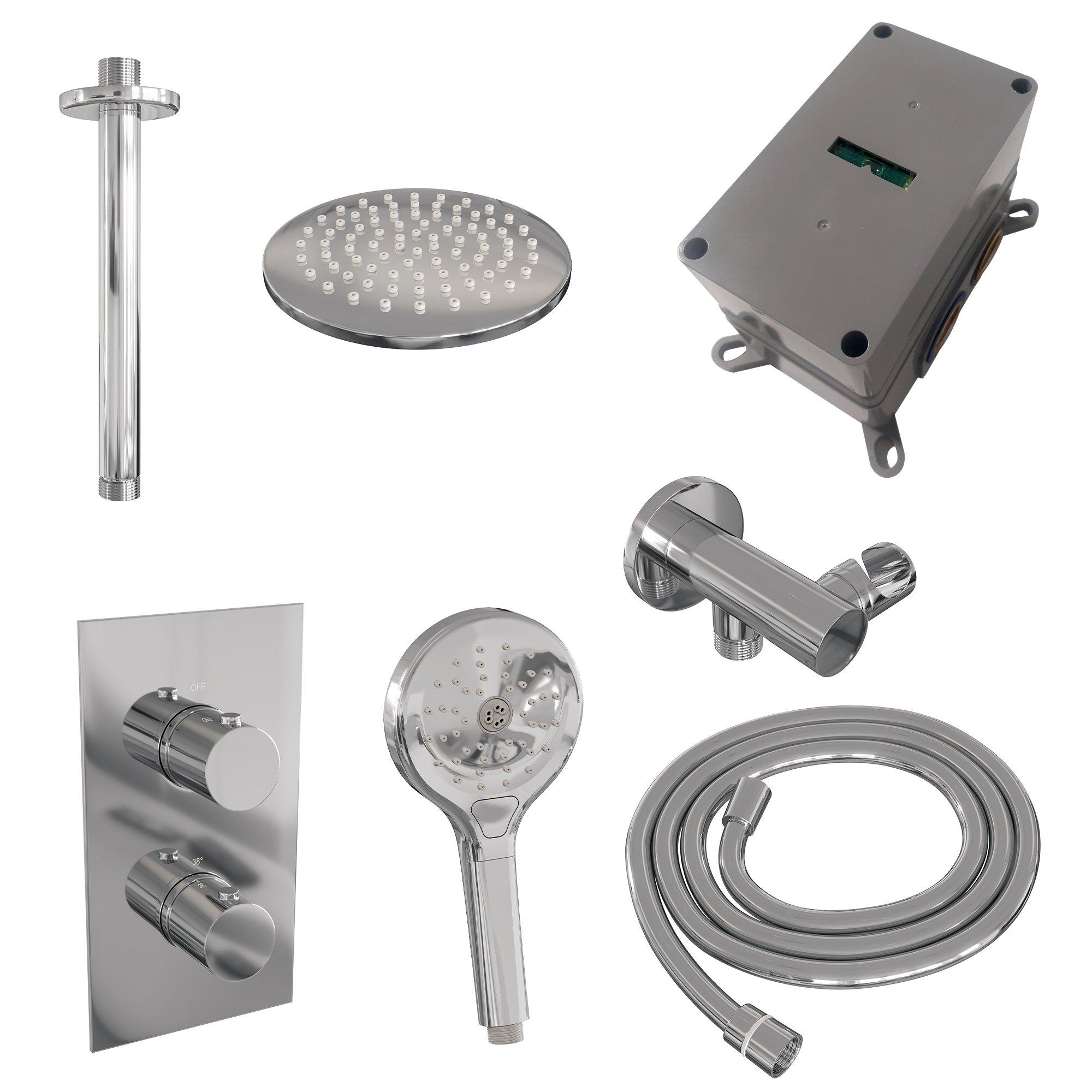 Brauer Chrome Edition Regendoucheset inbouw - hoofddouche 20cm - plafondarm 20cm - 2 functies - inclusief inbouwdeel - handdouche Rond 3 standen - chroom