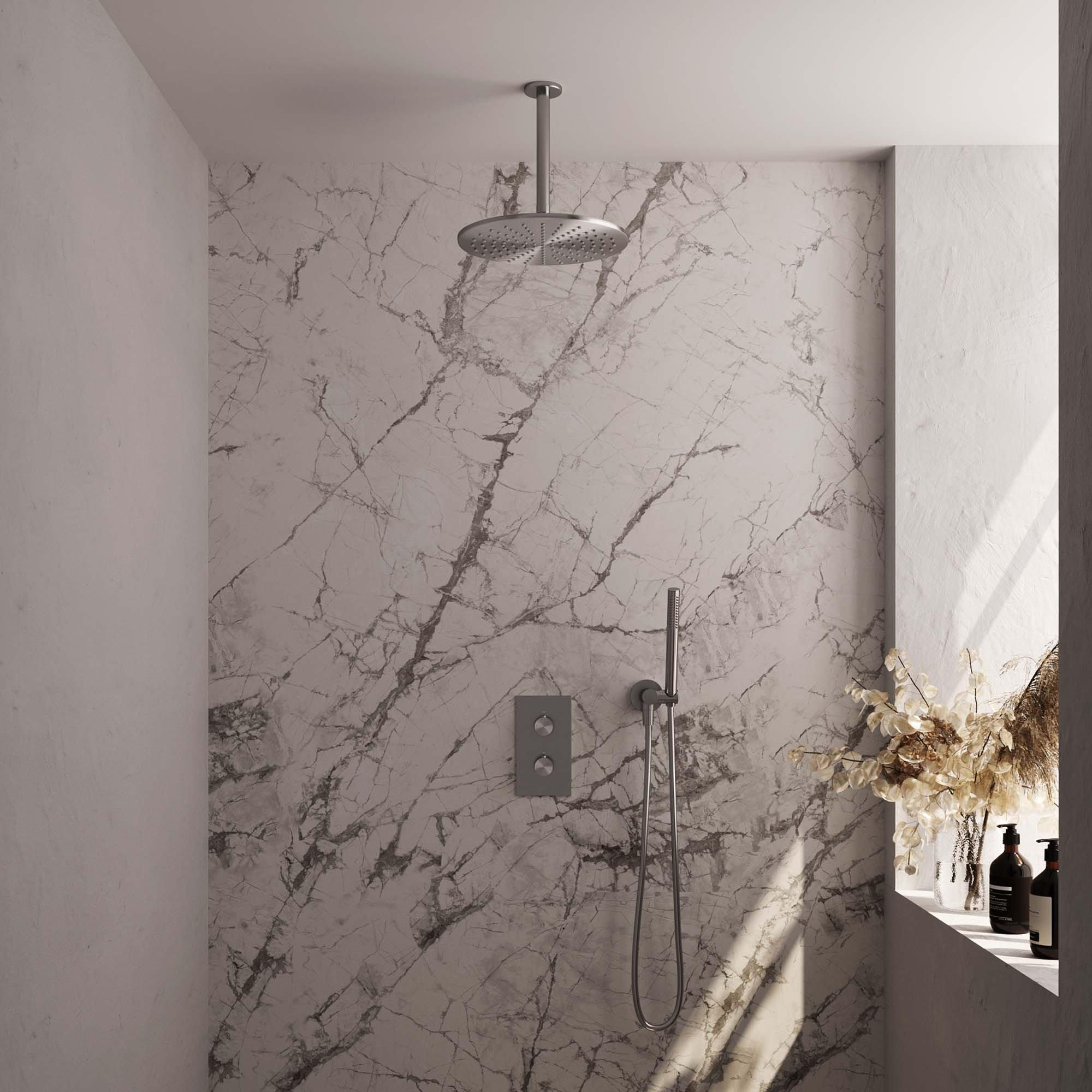 De Brauer Brushed Edition Regendoucheset straalt luxe uit in elke badkamer. De geborsteld RVS afwerking geeft een elegante en tijdloze uitstraling aan het geheel. Geniet van een ontspannende douche-ervaring met de regendouche van 30 cm die zorgt voor een gelijkmatige waterverdeling en een verfrissend gevoel.
