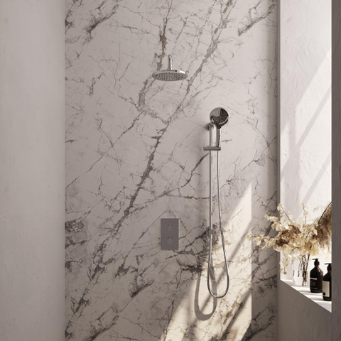De Brauer Chrome Edition Regendoucheset inbouw straalt stijl en elegantie uit. De chroomafwerking geeft een tijdloze uitstraling aan de set, terwijl de gladde knoppen zorgen voor een moeiteloze bediening. Deze set voegt niet alleen functionaliteit toe aan je badkamer, maar ook een vleugje luxe en klasse.