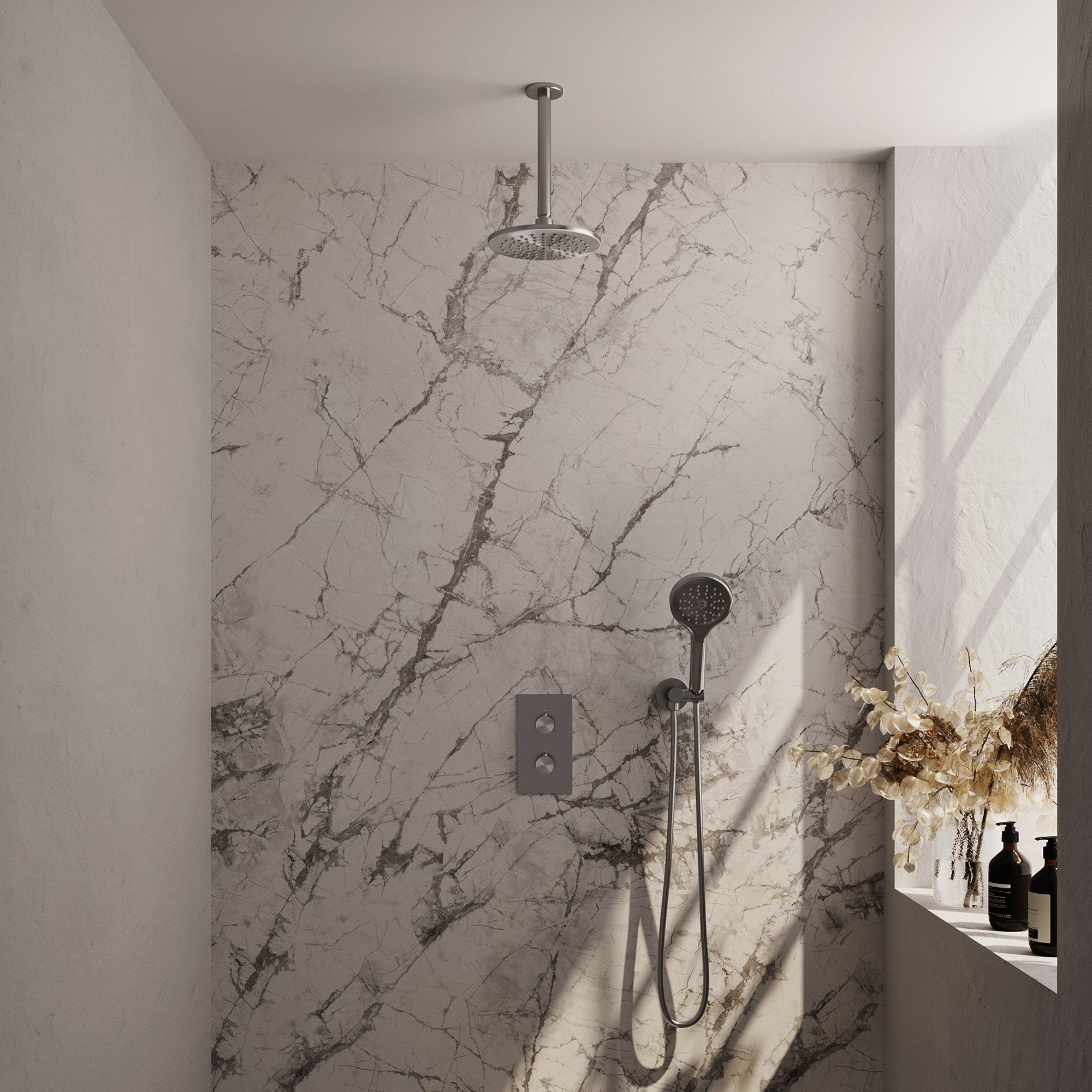 Op zoek naar extra luxe in de badkamer? Kies voor een inbouw regendouche in geborsteld RVS! Een regendouche geeft het gevoel van een zomerse regenbui op de huid, waardoor je compleet ontspant. De Brauer Brushed Edition regendouche is van alle gemakken voorzien: omstel thermostaat, handdouche en regendouche van 20 cm met plafondarm.